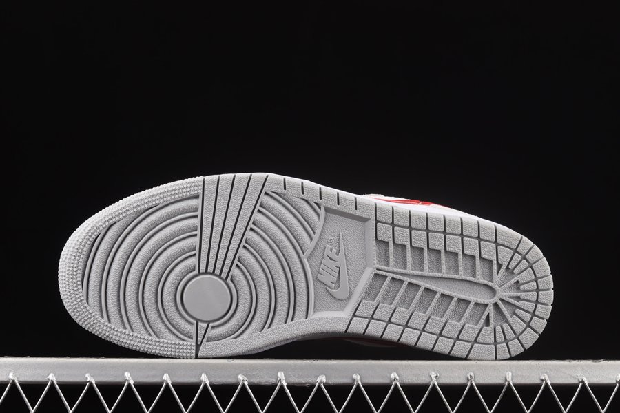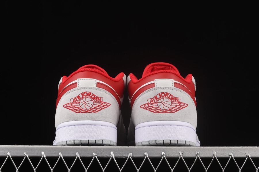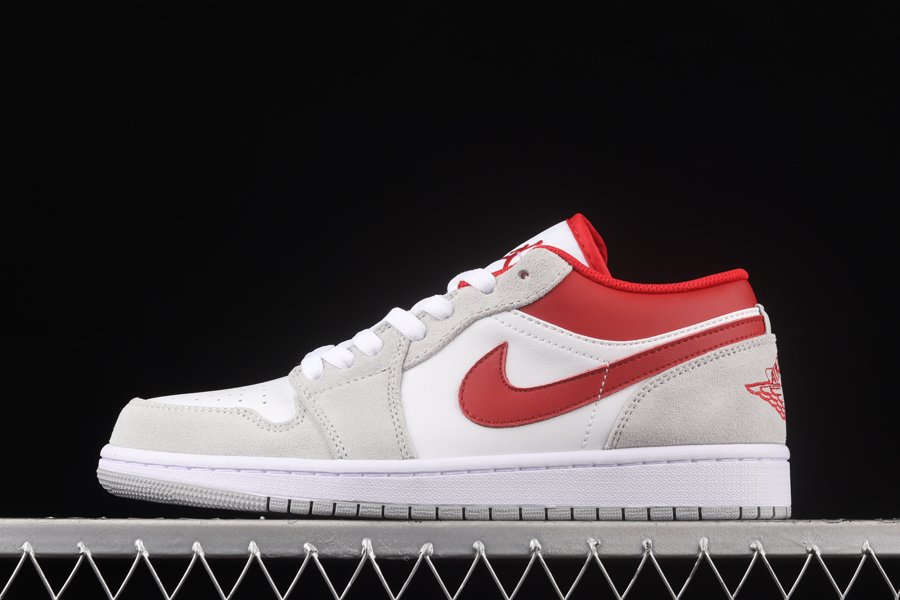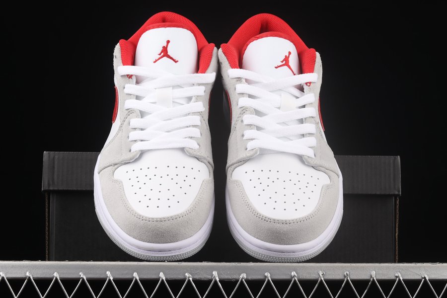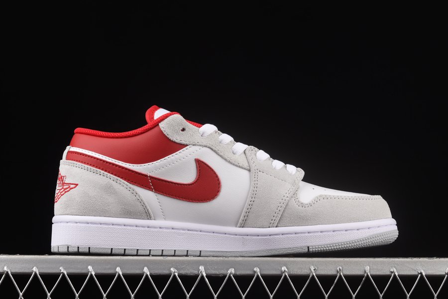 Peep this brand new colorway of the Air Jordan 1 Low. Keeping things clean and simple, this new flavor of the model starts off with a White leather base that’s then gently contrasted by the Grey hits on the suede overlays. Adding a nice pop of color onto the sneaker are the Red hits on the leather Swooshes, collars, tongue trim, lining and branding. Finishing details include the Metallic lace dubraes, White midsole and Grey rubber outsole.
