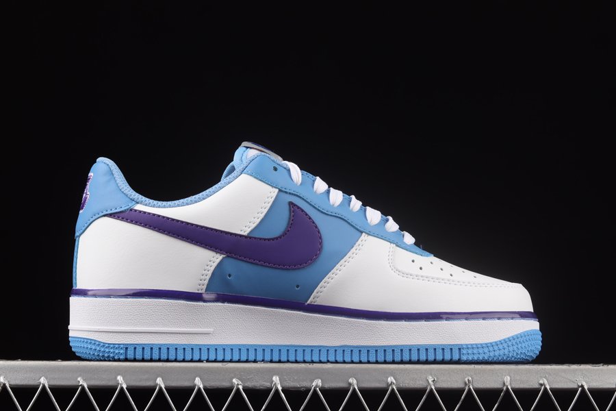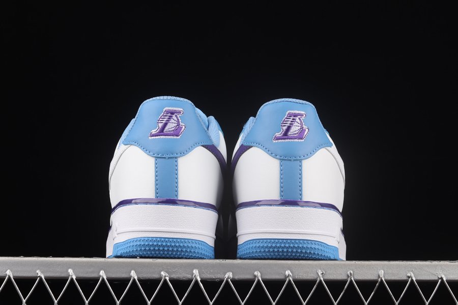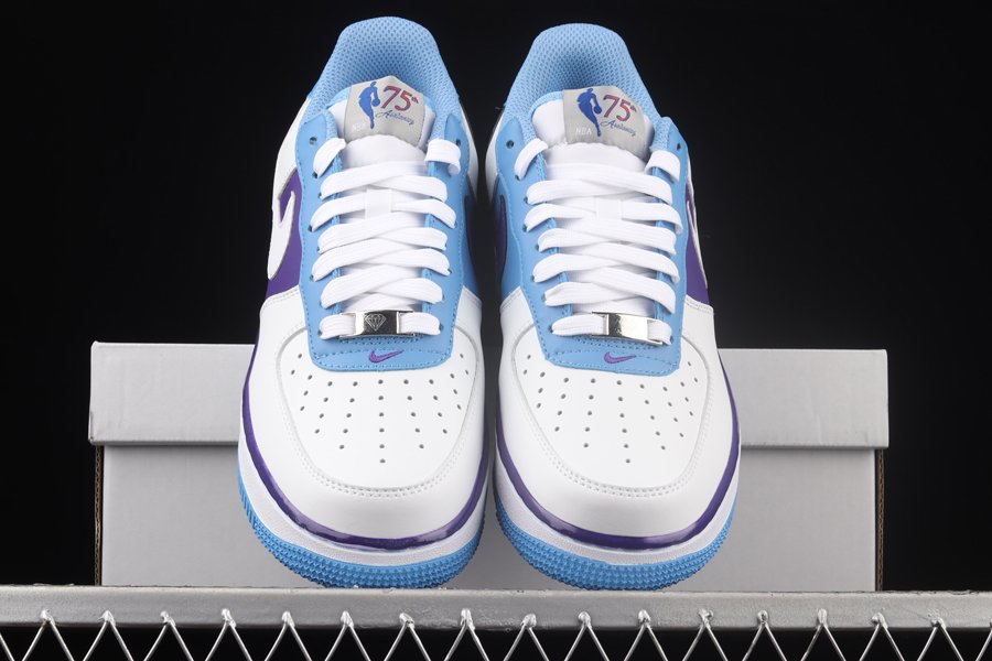 This special variation of the AF1 celebrates the NBA’s 75th Anniversary aka Diamond Anniversary in October and the model is draped in the Minneapolis Lakers’ hardwood classic jersey theme. The low-top flaunts a white leather upper that is contrasted with purple side panels and light blue adorning the eyelets, inner lining, and rubber outsole. Additionally, the model bears special anniversary branding on its tongue tags and diamond-etched lace dubraes, while Lakers-branded heel tabs round out the design.