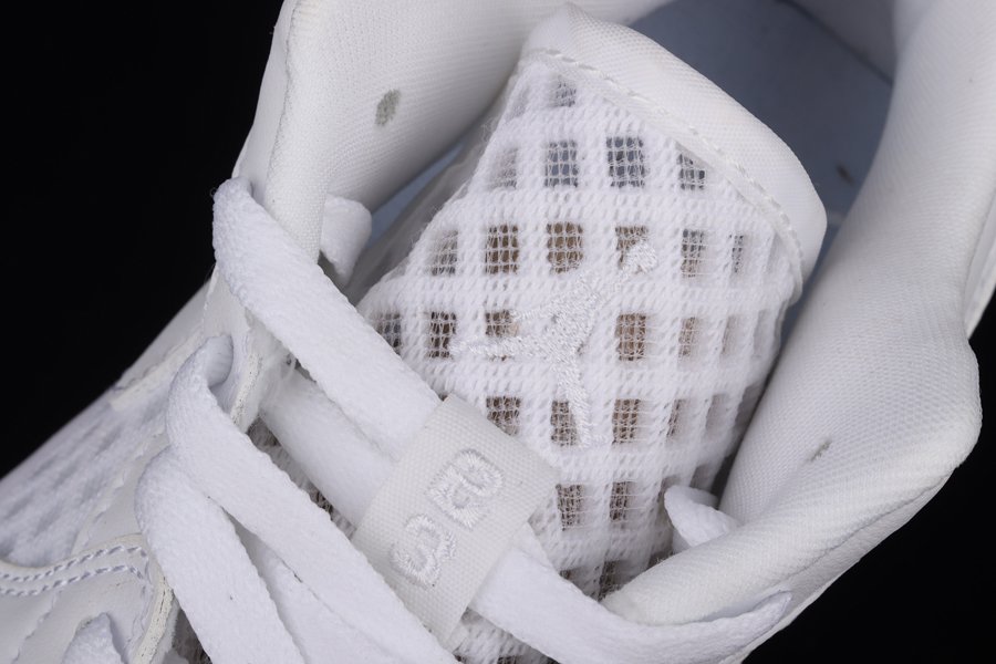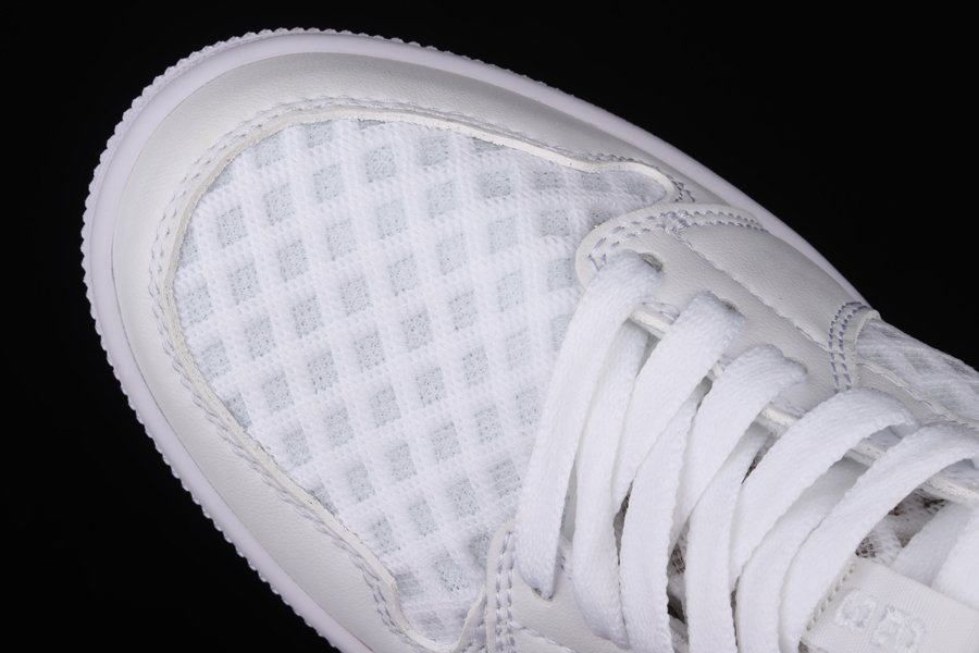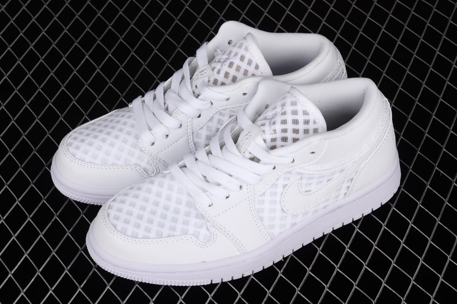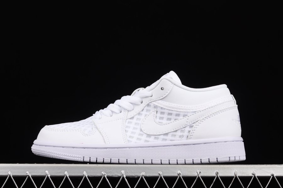This low-top Air Jordan 1 features all-White throughout along with tonal branding. Next, we have open-mesh on the panels, toe box, and tongue with leather on the overlays. Finishing the look is a White midsole and matching rubber outsole.