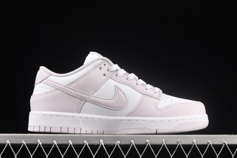 Keeping aesthetic clean and traditional, this new flavor of the Nike Dunk Low dons White leather underlays and Light Violet leather overlays. More Light Violet hits can be found on the Swooshes, tongue and insole branding and rubber outsole, while White hits take care of the tongues, mesh liners, laces, heel branding and midsole.