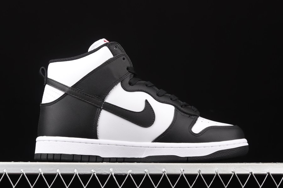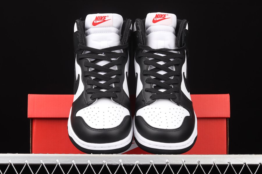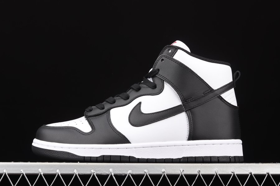 Like its low-top counterpart, the Dunk High is layered in a white premium upper with black overlays. Black Swoosh logos appear on the sides, followed up by black laces. However, unlike the low-top, the high-top sports a red Nike tongue tag, whereas the low-top featured a black tongue tag. Wrapping up its design is a white midsole, a black outsole, and black inner linings.