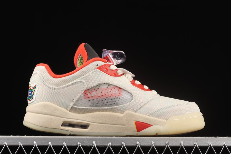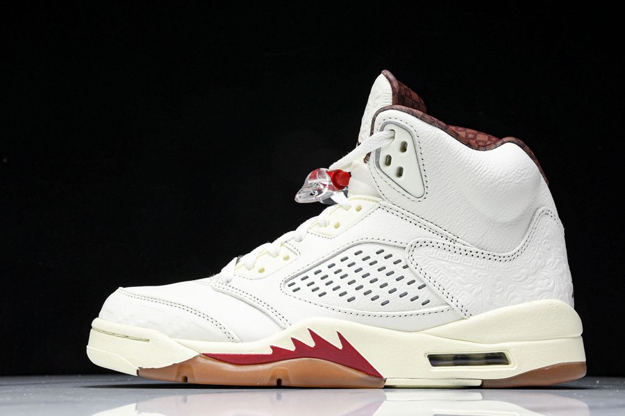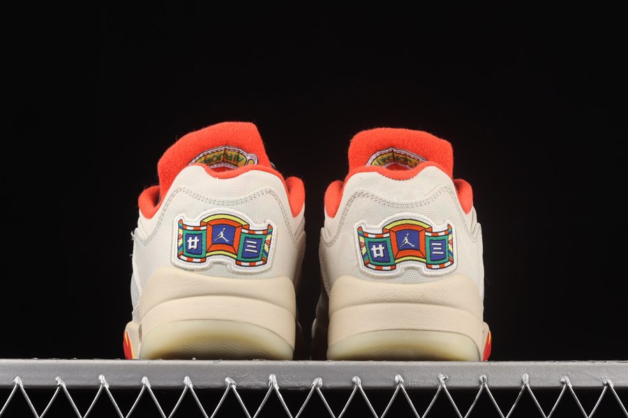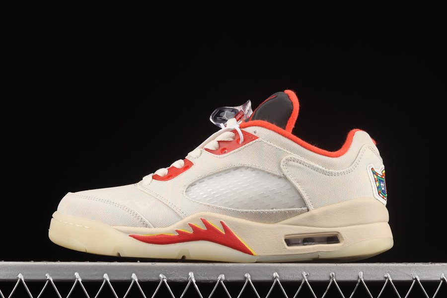 At first look, the kicks showcase a subtle cream colorway, and overlays across the structure adorn a chile red hue for a touch of contrast, including the inner lining. While traditional features from the High OG silhouette remains present here such as the medial netting, Air infused sail midsole lined with a rubber outsole for cushioned strides on and off the court, and the Jumpman logo on black tinted tongue tags, a closer look at the official images show CNY-inspired graphics printed underneath the wear-away canvas that crafts the upper. Completing the design are banner logos and additional text embroidered on the heel and behind the tongue.