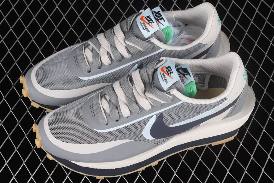 This colorway of the Clot x Sacai x Nike LDWaffle gets its inspiration from Nike Air Max 1 Kiss of Death follow-up colorway that released in 2013. Done in an Obsidian, Grey, and Navy color scheme, this pair differentiates itself by coming with a meshed base paired up with fused overlays instead of the traditional layered aesthetic we’re used to seeing from the model.