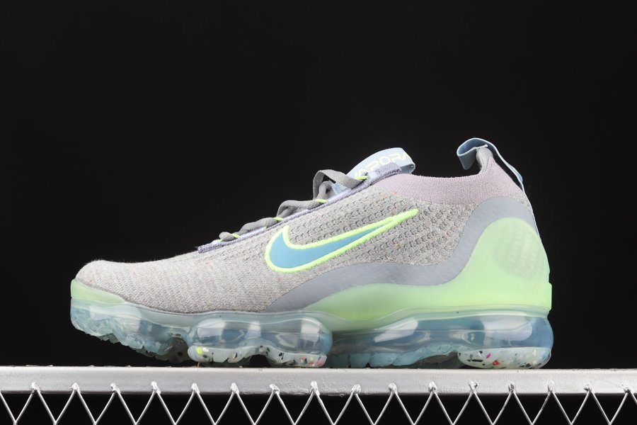 The Nike Air VaporMax 2021 arrives now in a ‘Grey Lime’ theme. Here, the Flyease tightening system has been removed for a traditional lacing system and the heel clips and toe cap now have a thicker Swoosh on the panels while. The usual Flyknit on the upper and the VaporMax Air unit stays the same.