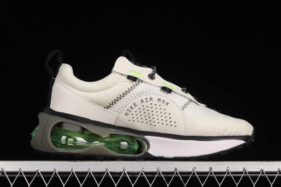 Taking a look at this Nike Air Max 2021, the lightweight sneaker gets covered in a cream white textile mesh all over the base of the upper with tonal detailing on the eyestay, leather heel, and part of the midsole. The highlight of the sneaker is the addition of Volt on the Swooshes, eyelets, and the large Air Unit on the midsole. For more contrast we see the addition of Black on the mesh tongue, laces, heels, the exposed stitching on the upper, and the rubber outsole.