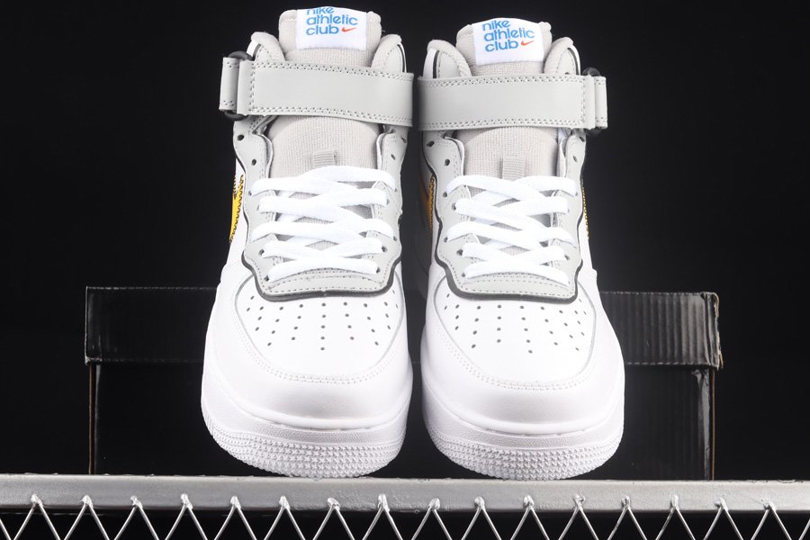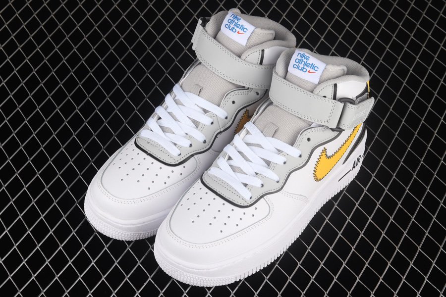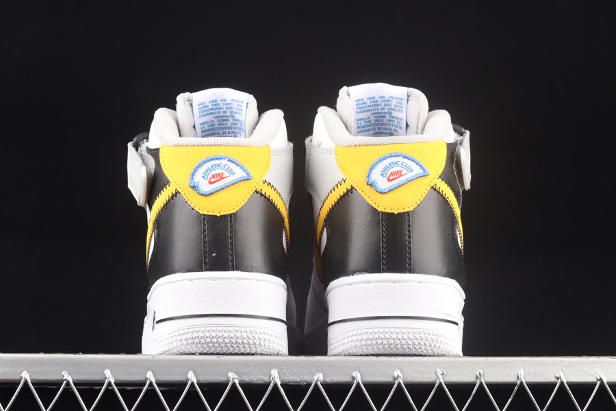 The Nike Air Force 1 Mid “Athletic Club” boasts a clean white leather base with contrasting black leather overlays seen on the rear and layered eyestays. On the mid panels, bold yellow Swoosh insignias with exposed stitching are featured. Further elevating this offering are grey liners, tongues, and ankle straps, while down below is a signature white AF1 midsole. A retro-inspired Nike Athletic Club tongue tags and insoles round out the final design cues.