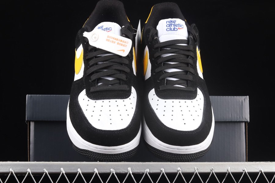 This edition of the AF1 arrives in a color blocking similar to the aforementioned pair, with a white leather base and suede overlays sitting above. “University Gold” coloring is seen on the Swoosh and back-tab, adding a flair of color to the other monochrome sneaker. “Athletic Club” insignia found on the tongue tab, insole, and special patch on the heel completes the design.