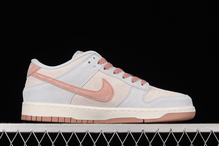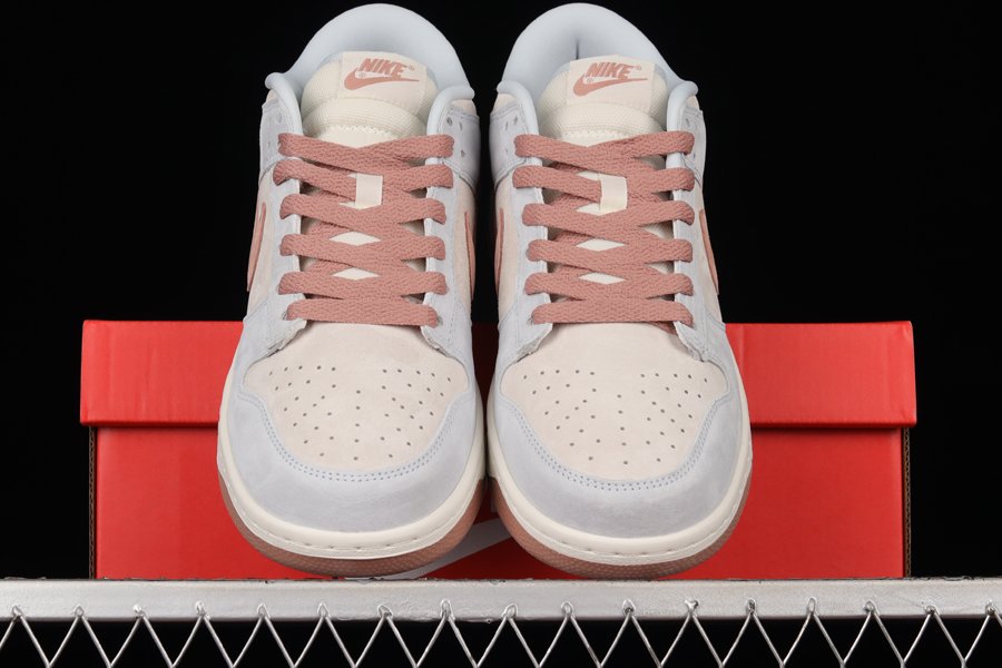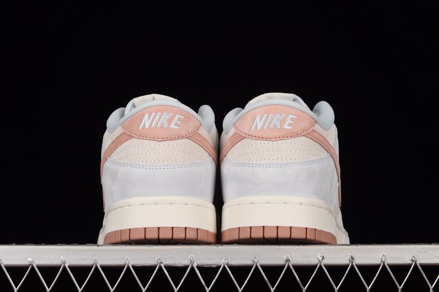 The low-top Nike Dunk dons a color scheme of “Phantom/Fossil Rose-Aura-Summit White,” with the pristine hue utilized for its suede base. Additionally, a light blue hue for the suede overlays, followed by the highlight Fossil Rose draping the Swooshes, laces, and branded heel tabs complement the clean profile. Finally, a white midsole and light gum rubber outsole rounds out the design.