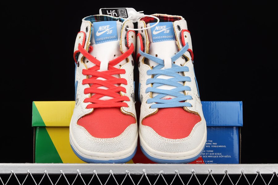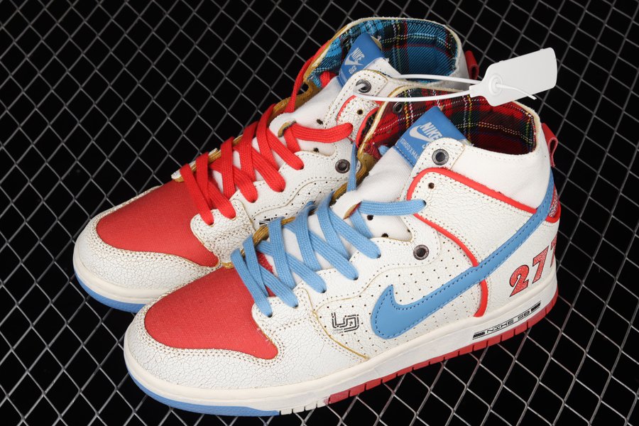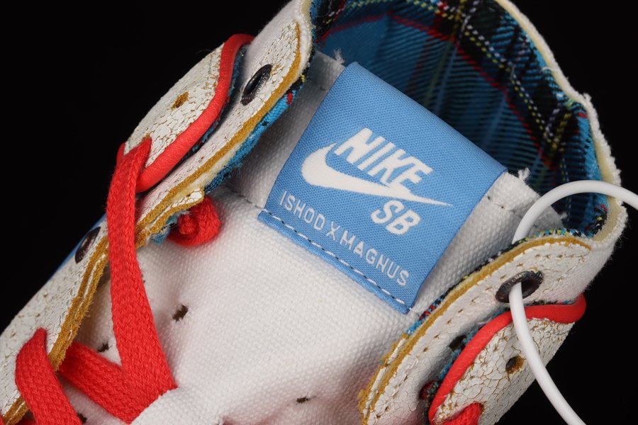 A pre-scuffed midsole with Nike SB branding on towards the heel is utilized as well as an insole with “Nike SB x Walker x Wair” and “277” printed on it. Plaid is seen on the liner of the SB Dunk High and “Ishod x Magnus” is stitched below the Nike SB logo on the tongue tag.