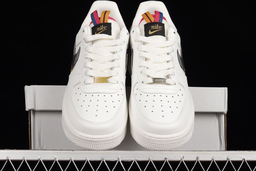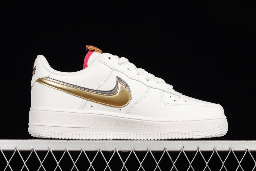 DH9595-001 White Nike Air Force 1 Low Double Swoosh Silver Gold