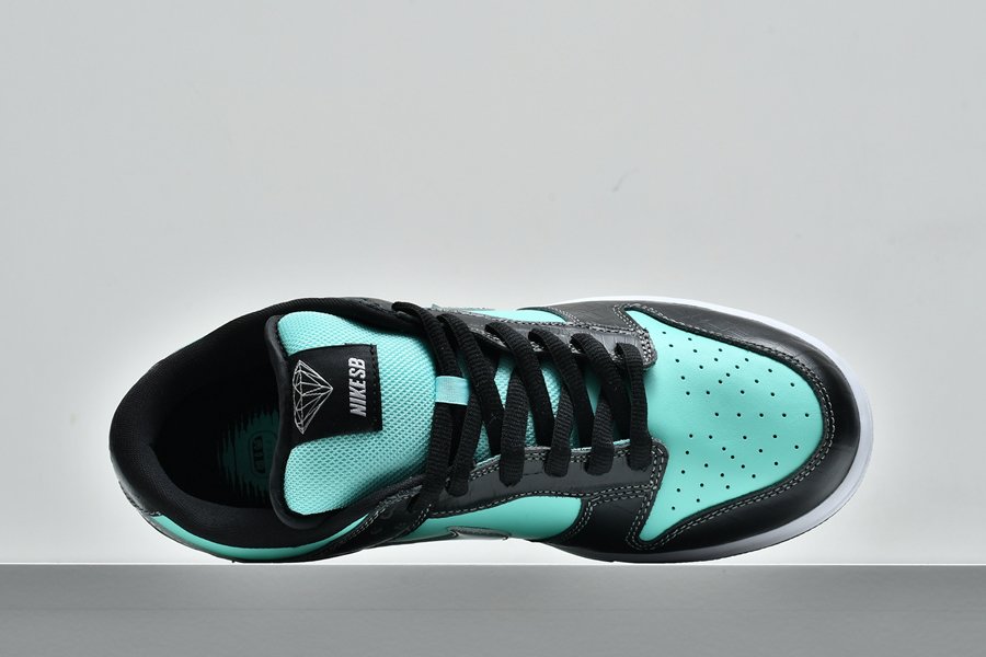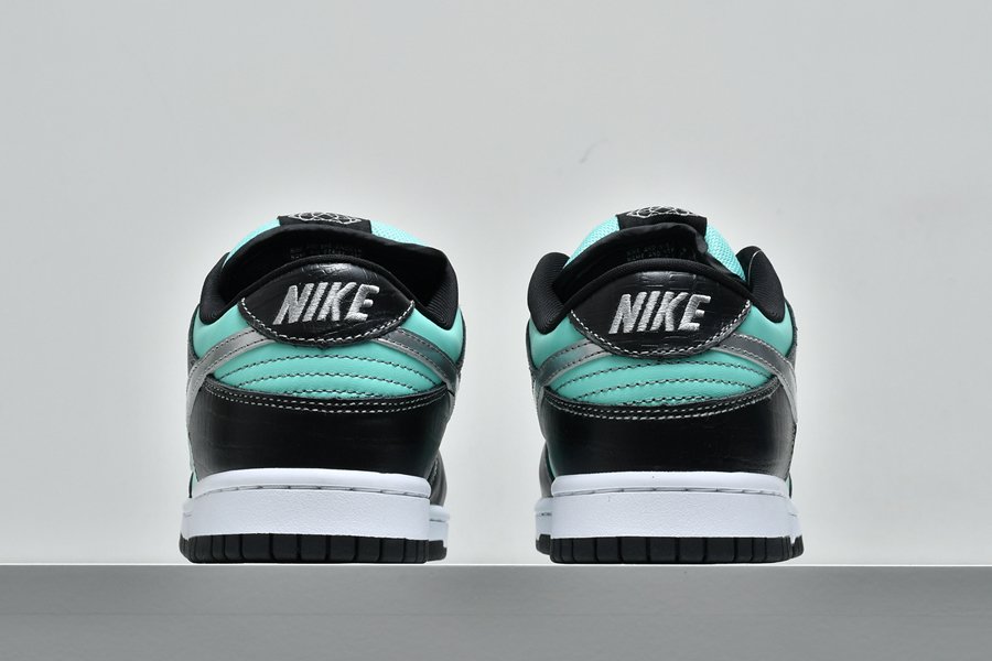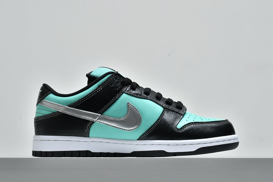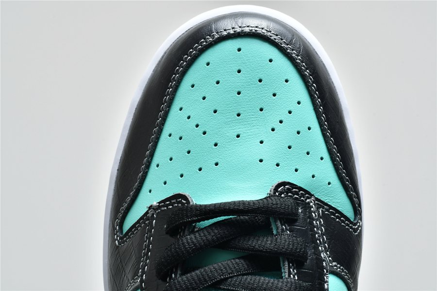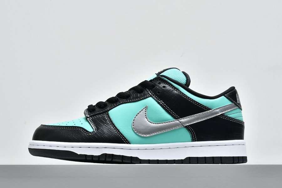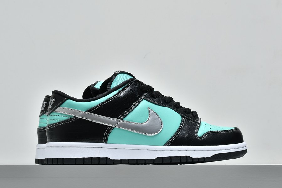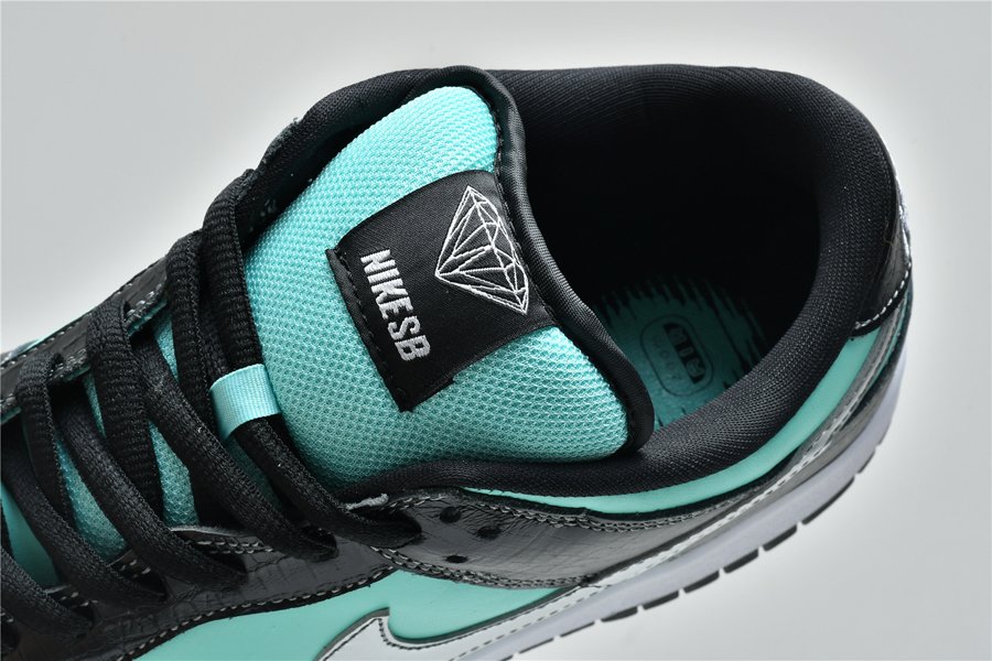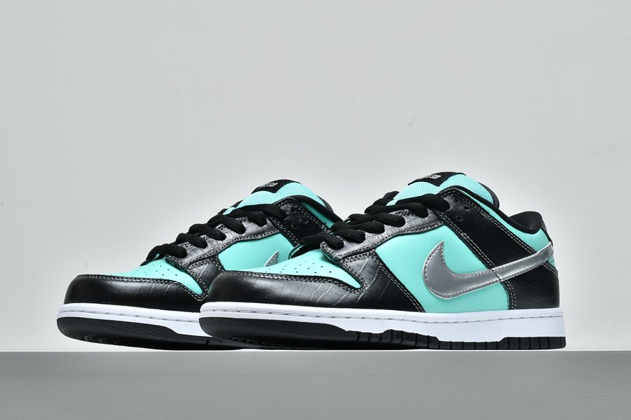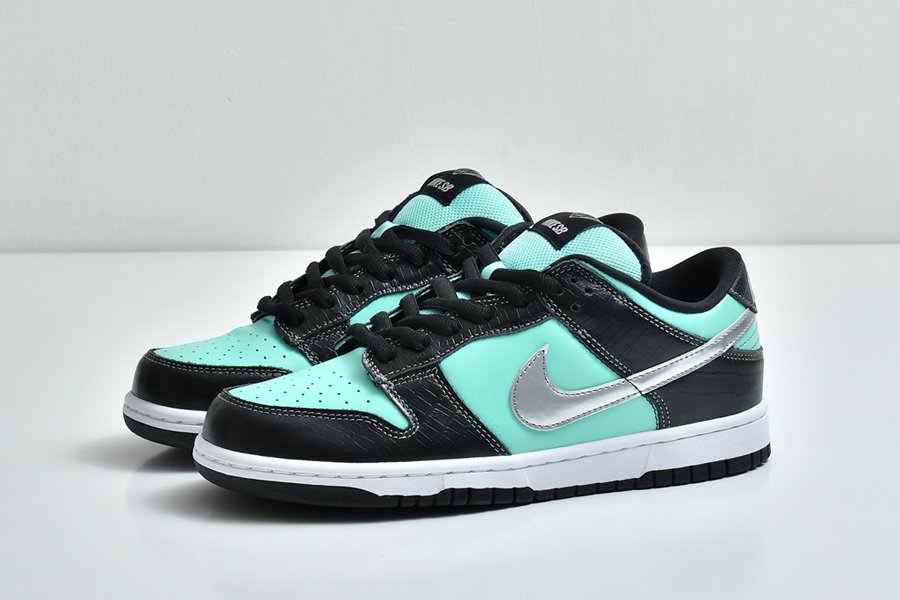 The luxurious look features crocodile-textured black leather, smooth turquoise leather, and metallic silver accents. The Diamond x Nike SB Dunk Low is an important piece of sneaker history that has inspired countless pieces from every reach of the culture. Now harder to find than ever, the Dunks are a true and precious gem.