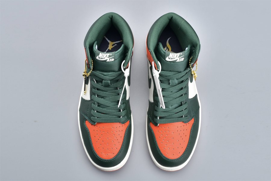 This SoleFly x Air Jordan 1 features an all-leather upper and takes on a Miami Hurricanes inspiration as the school’s colors of orange and green take care of the majority of the upper. White is then added on the side panels as well as on the midsole for contrast. The shoe also includes custom tongue tags, stamped heel logos, 305 (Miami’s area code) written inside the tongues, and an oversized Jumpman hangtag.