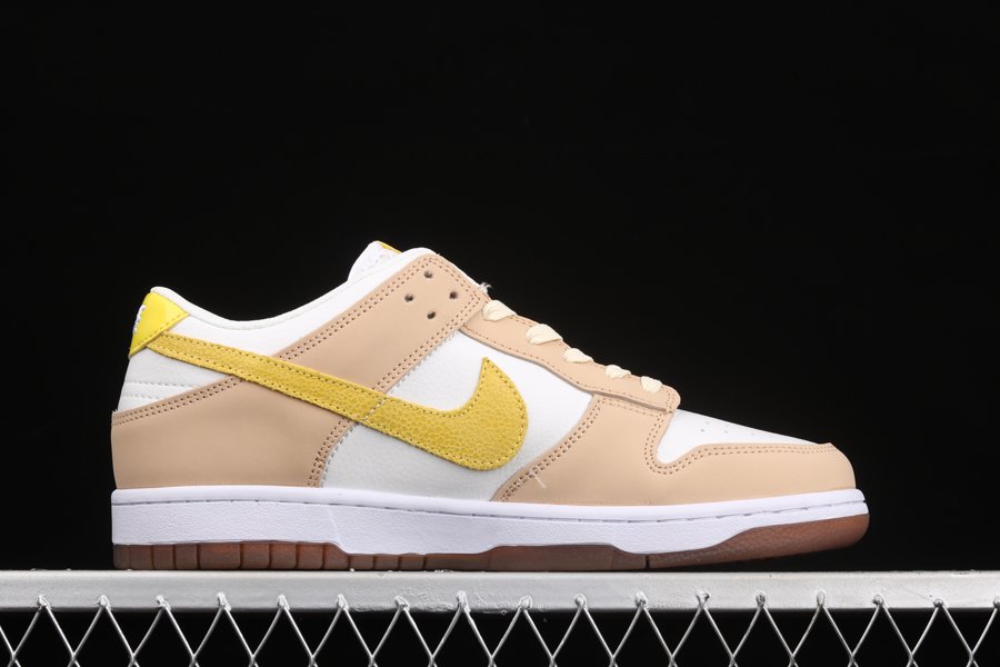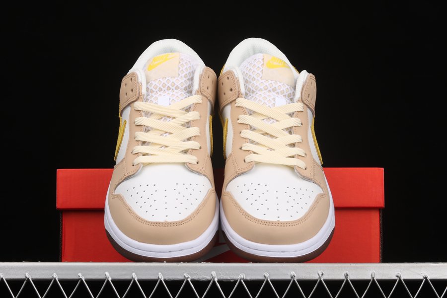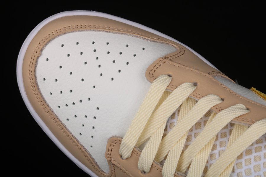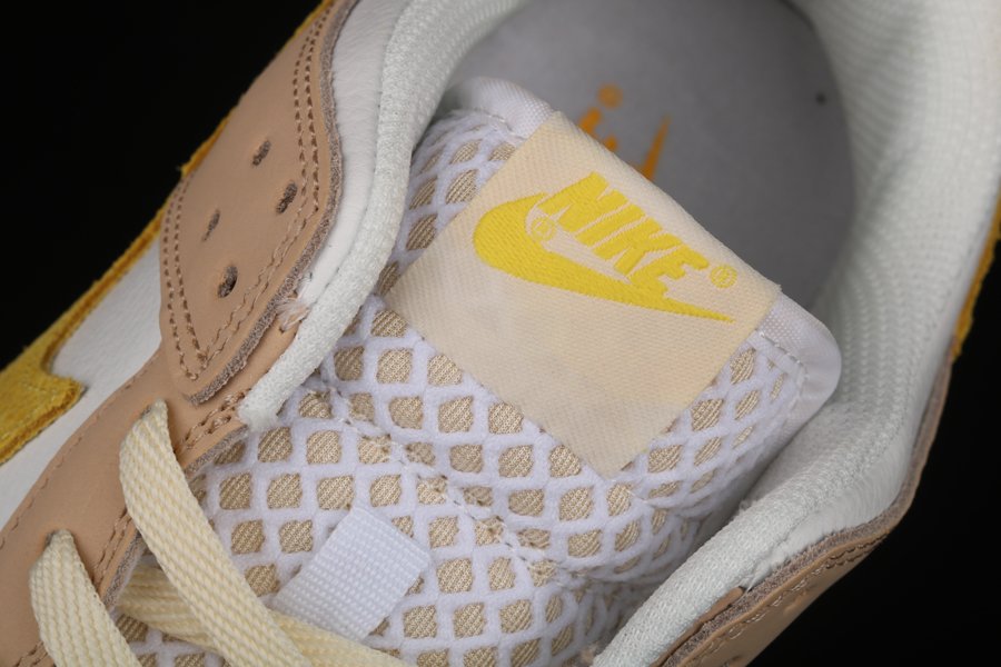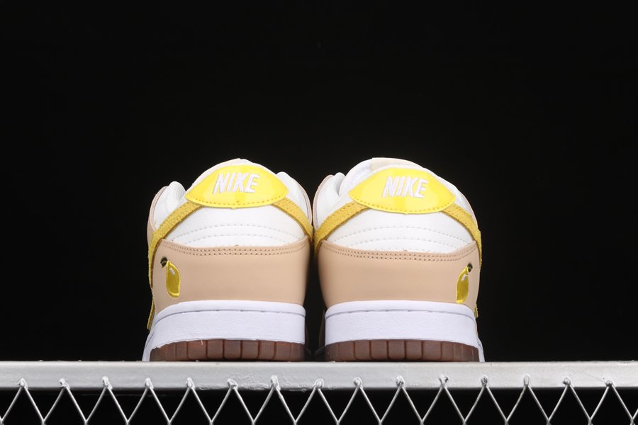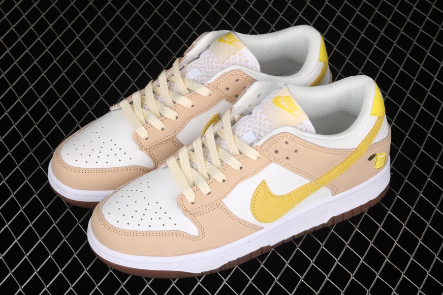 The look is executed in a white tumbled leather upper that’s offset by tan suede overlay panels along with sail shoelaces and a matching mesh tongue. The shoe’s signature details are seen on the textured Swoosh branding that resembles the surface of a lemon along with a graphic of the fruit embroidered on the heel. Breaking up the look is a white midsole and a semi-translucent outsole.