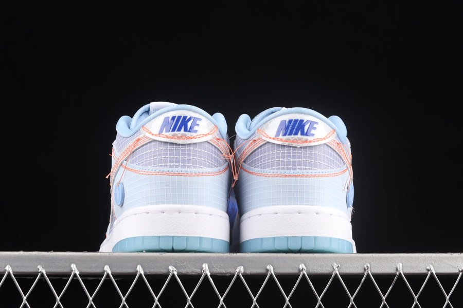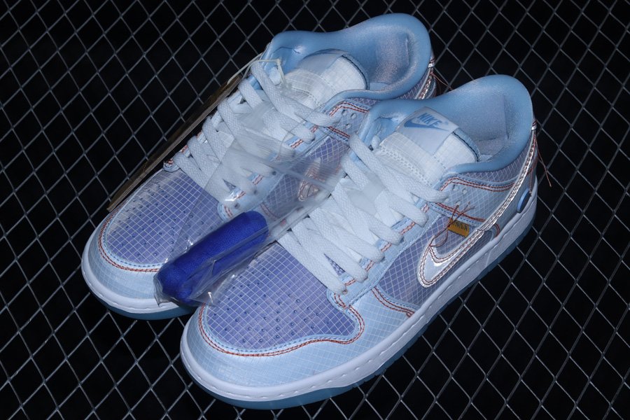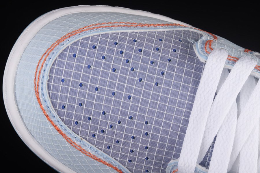 This version of the Union x Nike Dunk Low starts off with a light purple base paired up with light blue overlays. The overall construction is composed of a grid-patterned, ripstop-like material, that also includes exposed orange stitching noted throughout. A closer look also unveils UN/LA tags at the midfoot, along with Union’s halo man on the lateral ankle button, forefoot, and outsole. A White midsole and semi-translucent blue outsole completes the look.