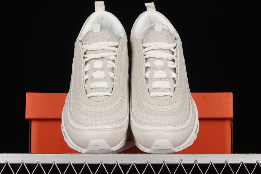 Taking on the classic and beloved mesh and leather construction throughout, this Nike Air Max 97 gets covered in neutral white and tans all over for a versatile appearance. Tonal branding throughout the shoe, a white rubber midsole with a full-length Air Max unit, and a white rubber outsole finish off this Nike Air Max 97.