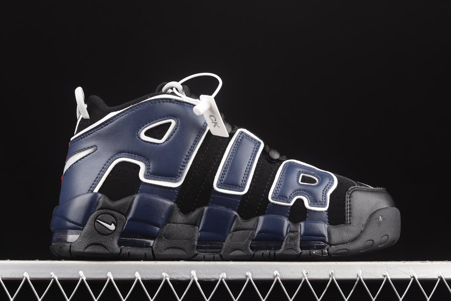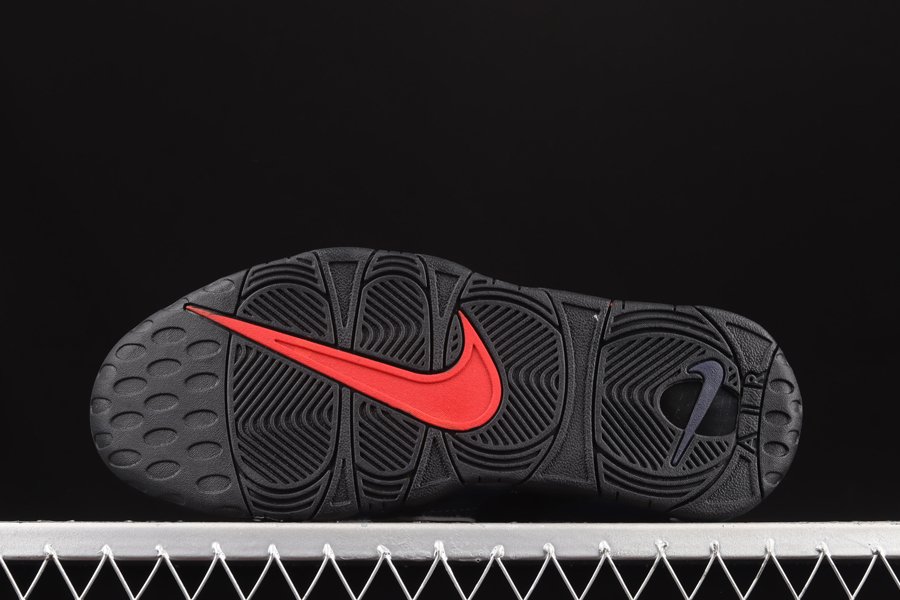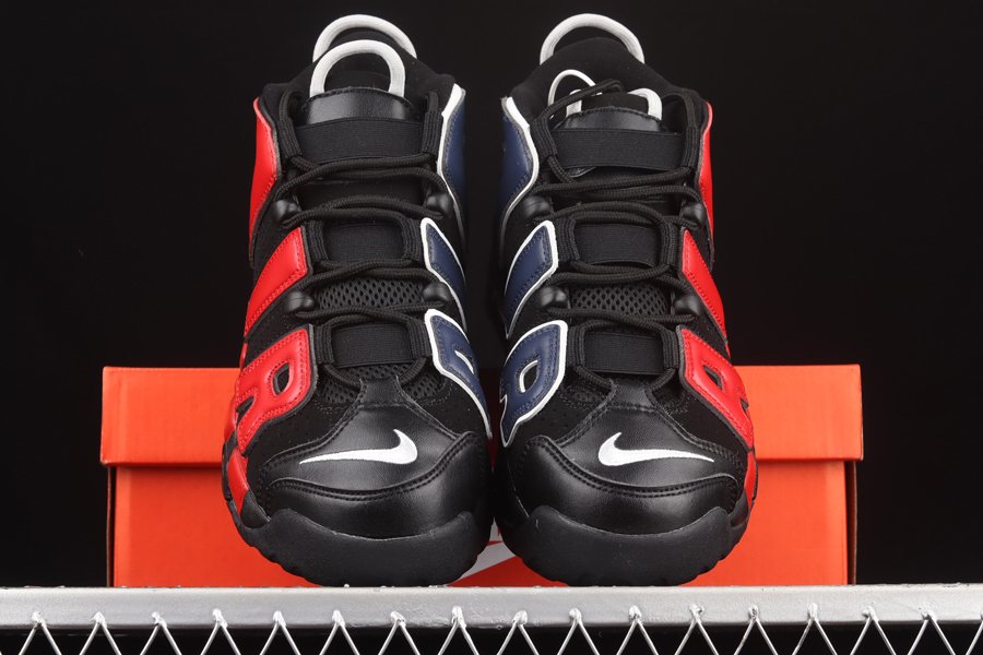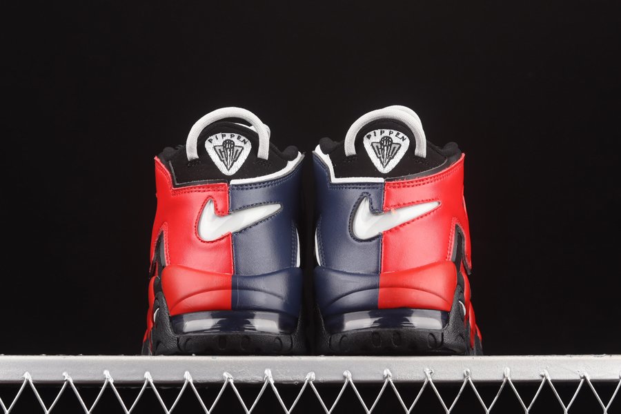 Anchored in jet black nubuck (and a leather toe cap), the silhouette’s signature lettering arrives split down the middle, with a Bulls-inspired red and black finish on the lateral side, and an Olympic navy and white on the medial. The paintwork down each respective side follows the lead of the hue above it, but Swoosh branding, pulls, insole detail and Air supports settle on silver to complete the design.