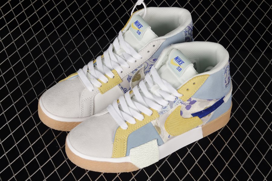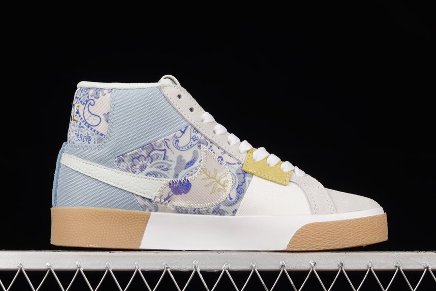 The pair comes equipped in a mix of suede, leather, and canvas materials. Similarly, the silhouette features paisley and floral graphics on the mid panels, and heels. Other returning elements include deconstructed Nike Checks on each side. Aside from its unique details, the iteration comes covered in pastel shades of blue and yellow throughout its upper. Wrapping up the silhouette is a white midsole and a gum outsole.