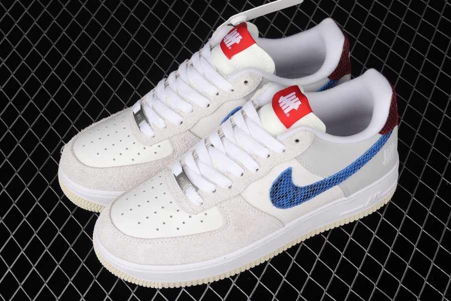 Sporting a clean color scheme of “Grey Fog/Imperial Blue,” this variation of the Nike Air Force 1 is elevated by its premium makeup that consists of textiles and prints such as snakeskin, leather, nubuck, suede, and canvas. Finally, the thematic “Dunk vs. AF1” branding is prominent on the insoles, alongside UNDFTD’s signature five strike logo gracing the tongue labels.