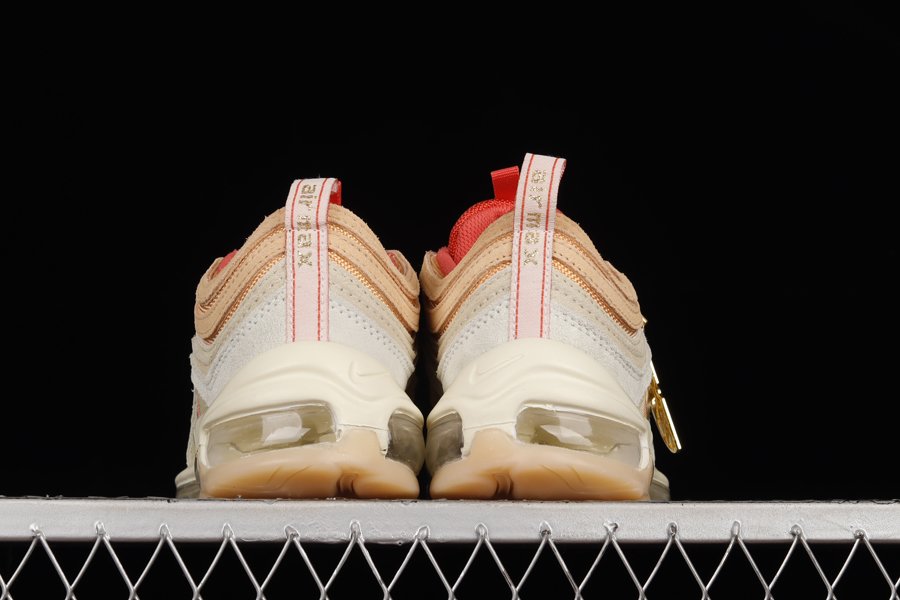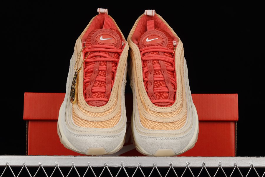 The Nike Air Max 97 Sisterhood is done in a Cashmere and Orange color scheme constructed out of a canvas base with suede overlays. A little bit of leather is used on the tongue tags. Other features include the Metallic Gold hits on the branded insoles and heel tabs atop a translucent outsole. The sneaker’s most notable feature is the half-half BFF hangtags and insoles graphics.