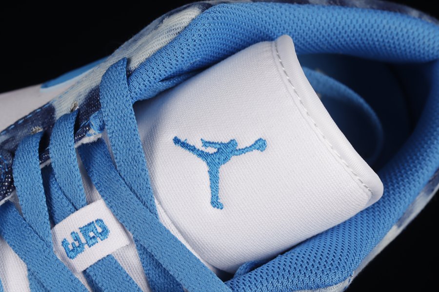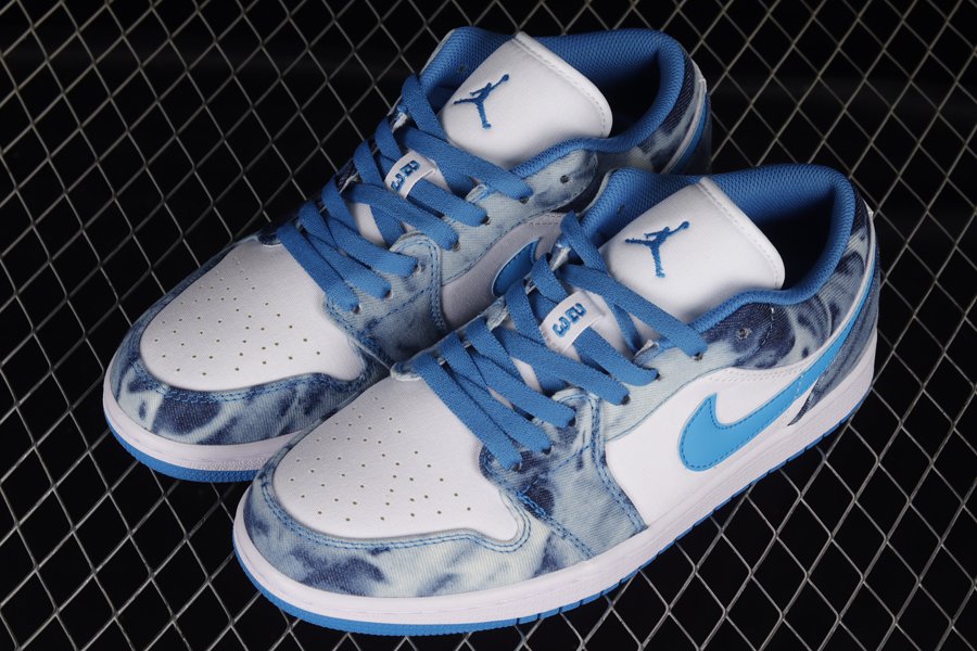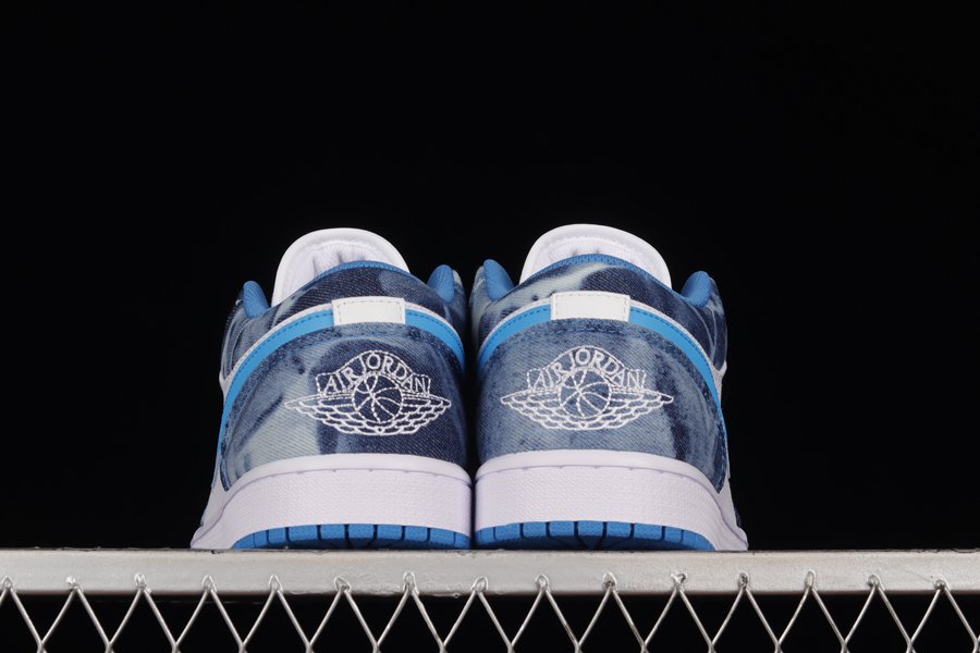 This Air Jordan 1 Low comes with White textile canvas on the base and tongue while Washed Denim appears on the overlays. Next, Blue leather lands on the Swoosh logos while the same shade hits the laces, tongue branding, liner, and outsole. Finally, an embroidered White Wings logo lands on the heel.