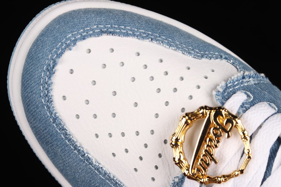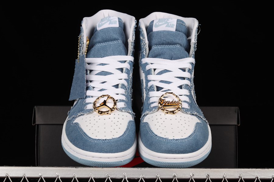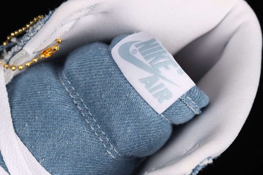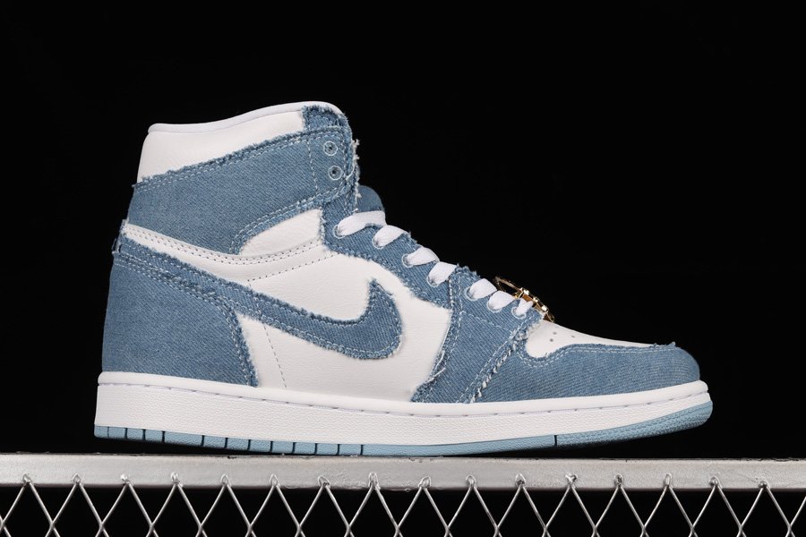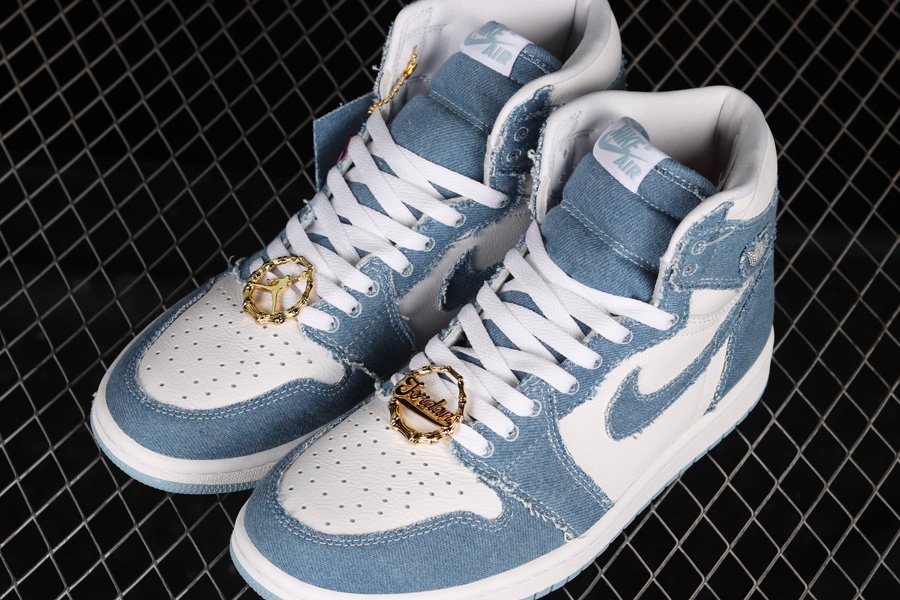 Donning an official color scheme of “White/Worn Blue-Metallic Gold,” the high-top dons a white tumbled leather base with the highlight denim blue overlays across. Additionally, hits of pastel blue hues adorn the tongue tags and rubber outsole, while exclusive gold Jumpman-branded lace dubraes add luxury to the style as well as completing the overall aesthetic.