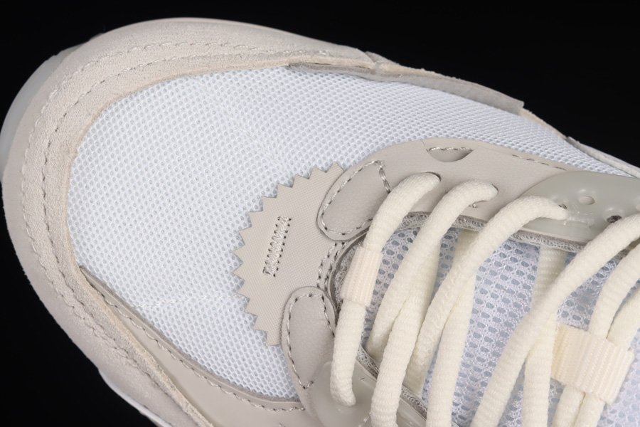 After showcasing the ’Triple White’ pair, this variation of the Nike Air Max 90 comes dressed in a Summit White, Light Bone, and Phantom color combination. Utilizing a layered construction while mixing mesh, leather, and suede. Other details include a White midsole and a translucent outsole.
