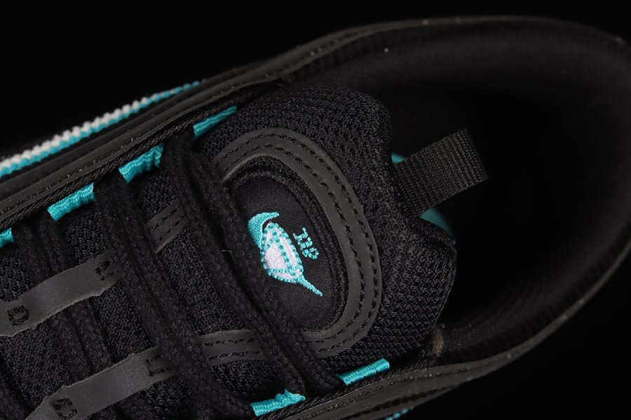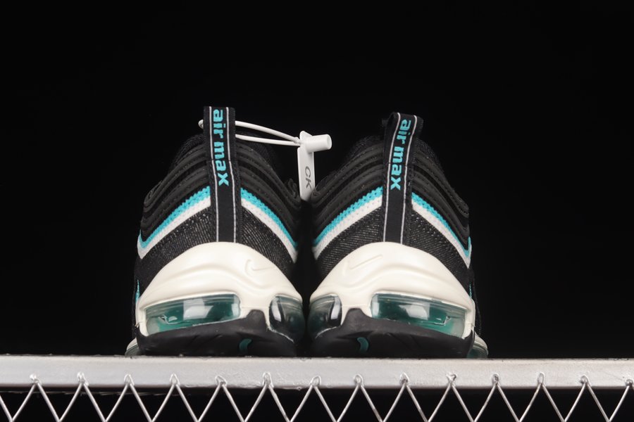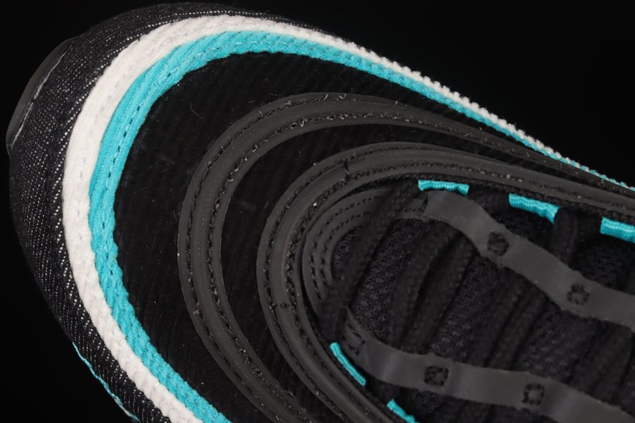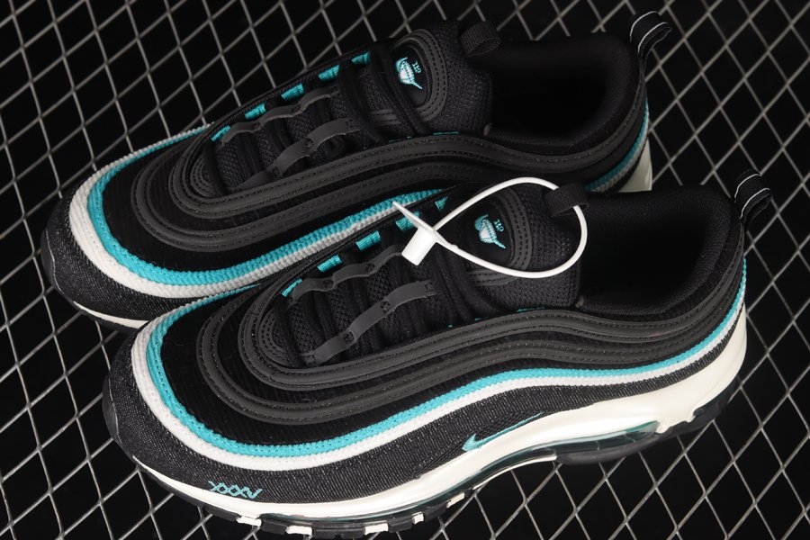 The Nike Air Max 97 SE “Sport Turbo” features a black mesh base accented with denim and corduroy overlays. Elsewhere contrasting “Turquoise” appears mixed into the wavy overlays, mini Swoosh insignia, and special “XXXV” emblazoned on the forefoot and insoles. Final details include the 3M reflective hits, the “3JP Sport Turbo” branding, and lastly the white midsole and black outsole combo.