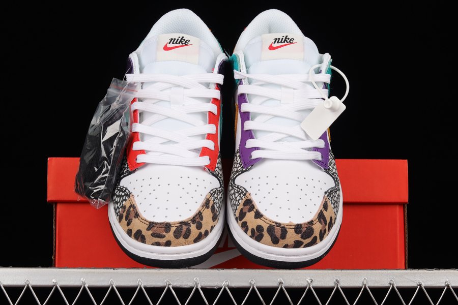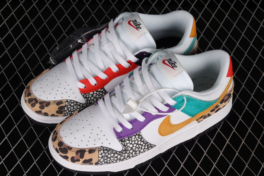 This vibrant iteration of the low-top boasts a white leather base as its canvas while a vibrant mixture of safari prints, including leopard, faux fur, and more are prominent across the overlays. Finally, mismatching suede Swooshes, followed by a white midsole and black rubber outsole rounds out the eye-catching profile.