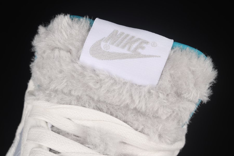 The upper’s build is reliant on a duo of materials including velvet and a silky satin, the former of which appears in a snowy white hue atop the Swooshes and overlays while the latter is given a silver complexion and is distributed to the toe boxes, quarter panels and collars. To spruce up its season of giving vibe, the Swoosh family adds various holiday-inspired embroidery here including an image of two kids sledding on the lateral heels, a nutcracker-like figure on the medial side and a what appears to be a kid looking to catch a falling ornament on the left shoe’s toe box. Additionally, the tongues and the heel overlays have been texturized with angelic fur, the latter of which is also ornamented with multi-colored banners. The interiors feature bright teal lining and insoles that feature a kanji that translates to “ice.”