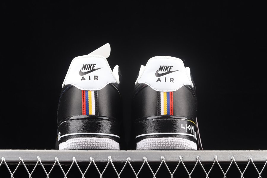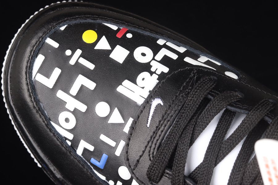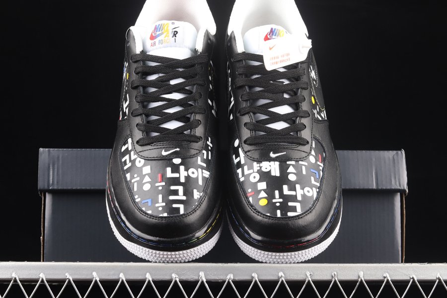 It essentially commemorates the invention and the proclamation of Hangul, the alphabet of the Korean language. This iteration of the AF1 dons a black leather build that is punctuated with a graphic of Korean consonants and vowels. Multicolor threading on the Swooshes and throughout, as well as the shape that expresses the way the mouth moves when pronouncing characters is added to solidify the theme. Finally, a black midsole and white rubber outsole rounds out the style.