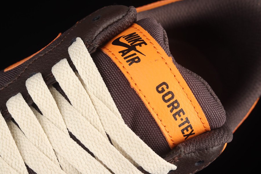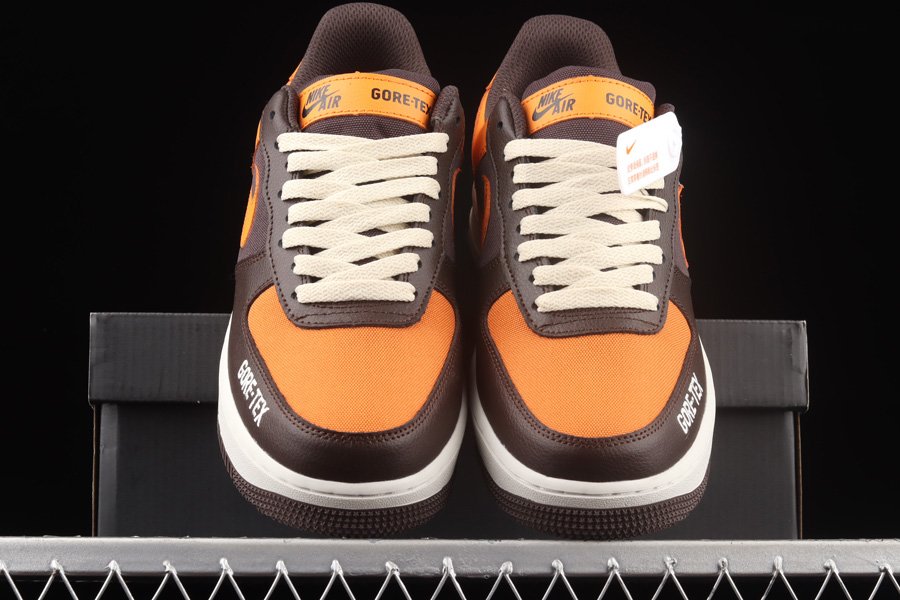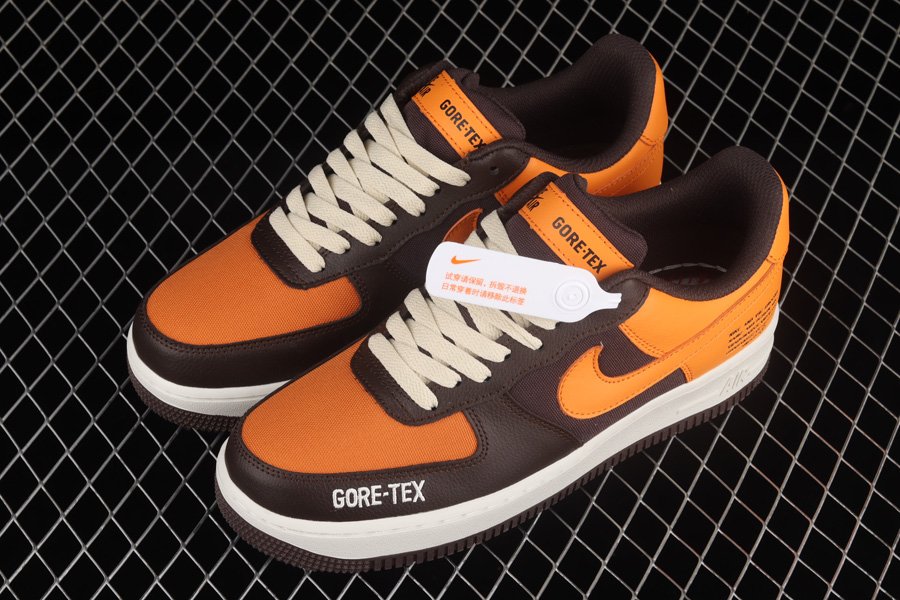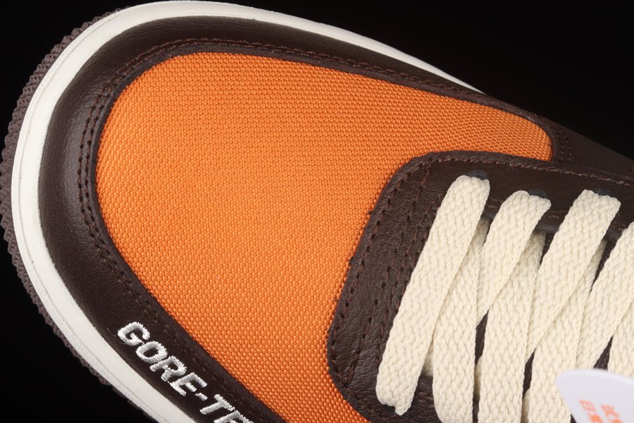 The GORE-TEX materials on this Nike Air Force 1 Low allow for weather-proof durability. The toebox is filed with thick orange canvas that matches the orange leather on the rear overlay and signature Nike Swoosh. The lateral quarter also uses thick canvas, but in a shade of dark brown. The eyestays and overlays around the forefoot are dressed in premium brown leather. The GORE-TEX logo is embroidered on the side of the toe cap and also appears on the co-branded tongue. For added detail, the heel counter features an embossed manifesto from Nike. Final touches include an off-white midsole complete with a brown outsole and off-white shoelaces.