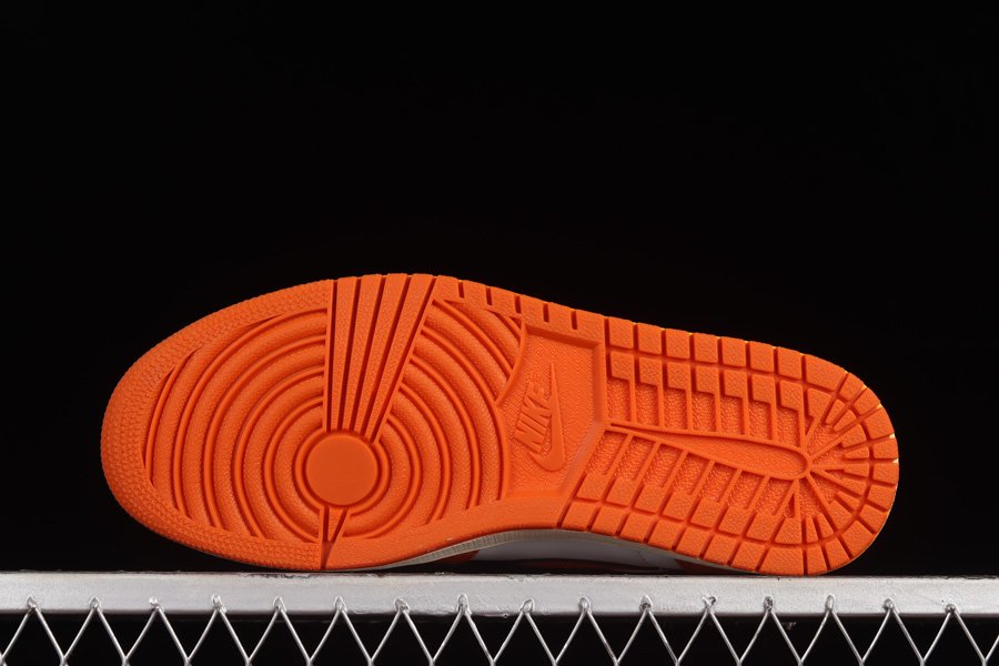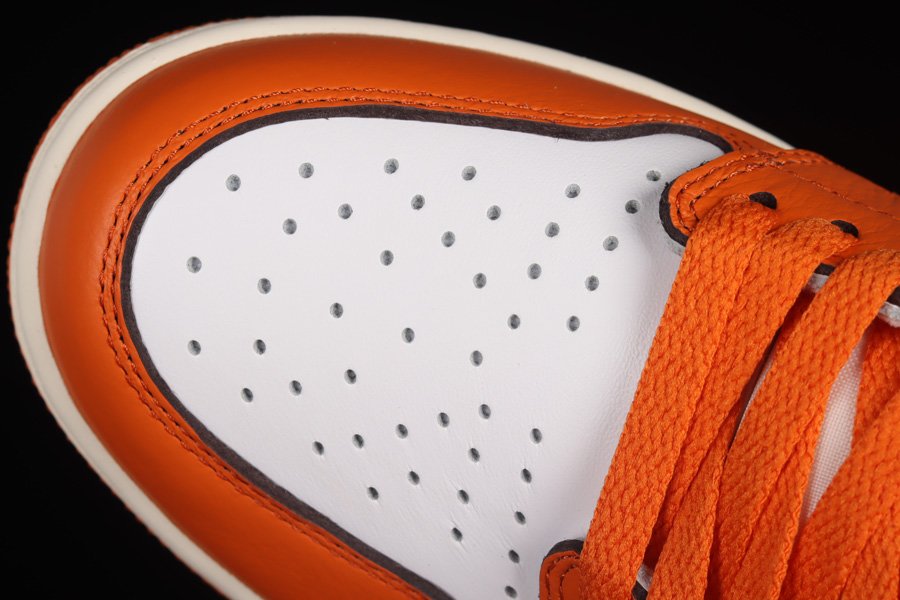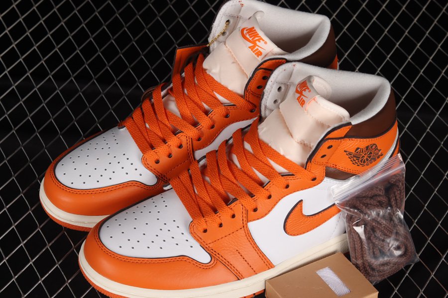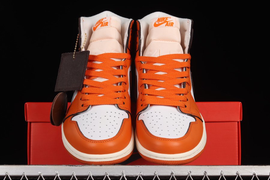 The kicks bear a three-toned color scheme that’s somewhat of reminiscent of the famed “Shattered Backboard” series, and these early leaked images show off all of its important angles. Premium leather makes up the build of most of the top half and its “Starfish” hue leads the charge as it fills in the Swooshes, laces, ankle flaps and overlays. Contrasts peek through the quarters and toe boxes which are styled in white while the collars and ball-and-wings logos are fitted with black skin. Nylon tongues and midsole pieces are dressed up with creamy outers which provide somewhat of a vintage feel.