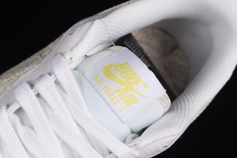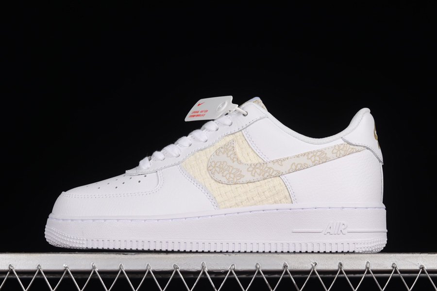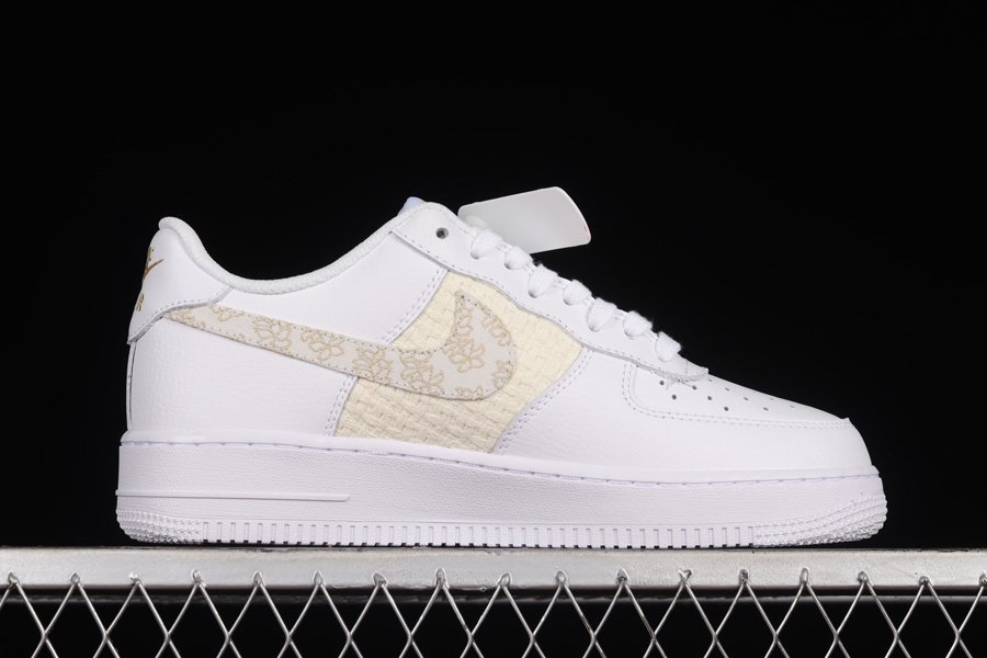 Fairly subtle in design, this new makeup of the Air Force Low starts off with a White tumbled leather upper paired up with smooth leather on the heels and woven side panels. The star of the sneaker is the flower embroidery that take care of the side panel Swooshes. Elsewhere you will find Gold tongue and heel branding, flower detailing on the insoles and White rubber soles.