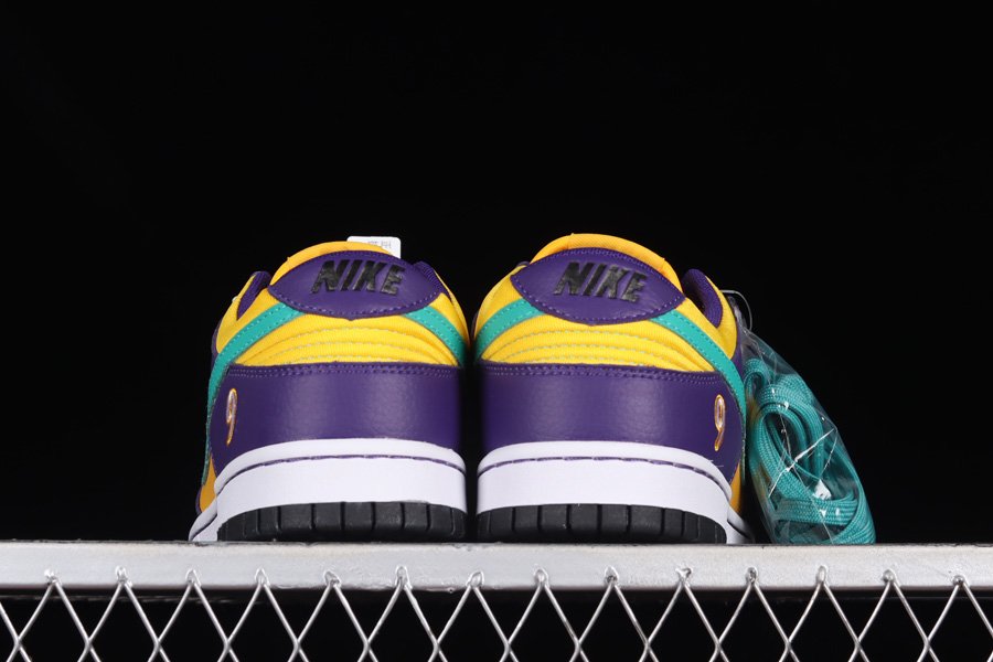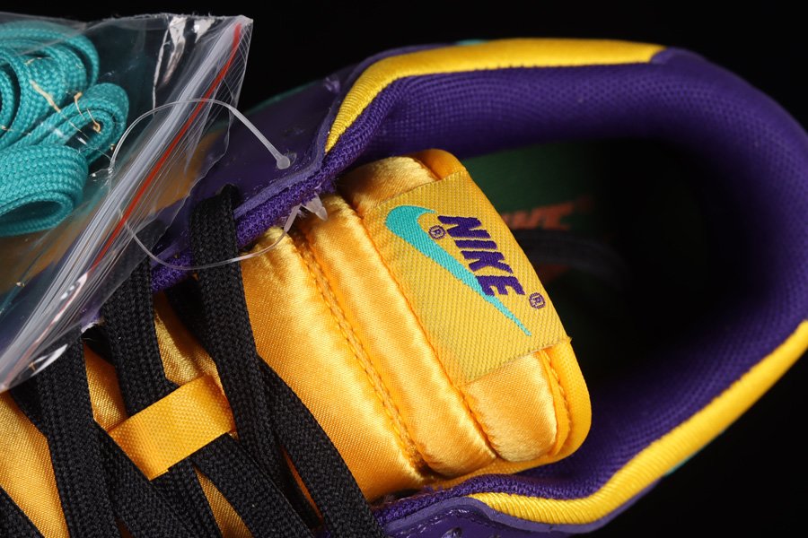 This special edition of the Nike Dunk Low draws inspiration from the Sparks’ team jerseys that Leslie wore while playing for the team as the sneaker gets covered in a yellow leather on the base of the upper with purple on the overlays and emerald Swooshes. Additional details include Leslie’s number “9” on the heels, black detailing on the laces and heel branding, white midsoles, and black rubber outsoles.