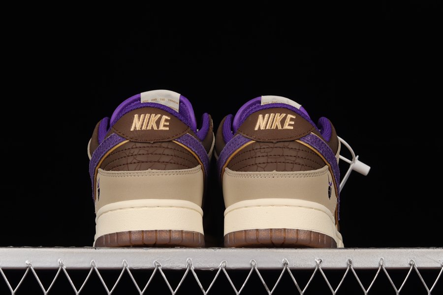 The Nike Dunk Low Setsubun comes dressed in a Light Brown base paired up with Khaki and Dark Brown overlays. Other details include the Purple contrasting accents on the Swooshes, lining, tongues, and a “demon” embroidered on the lateral heel. Elsewhere you will find a White midsole atop a semi-translucent outsole with a special artwork from the late Edo period (1840s) by Utagawa Kuniyoshi titled 金時の節分. The artwork displays bean-throwing child hero known as Kintarō, who will grow up to be the mighty warrior Sakata Kintoki, one of the retainers of the famous demon-fighter Minamoto Yorimitsu (Raikō).