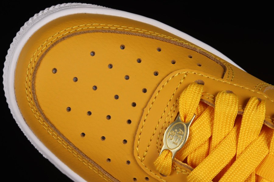 This AF1’s tumbled leather upper dons the titular resplendent Golden Orange from heel to toe. The exceptions are the high-contrast smooth leather profile Swooshes on both the medial and lateral sides of the shoe. The smooth leather heel tabs follow suit. Commemorative details pepper the sneaker. The tongues feature an oversized “1”, the insoles show off “82-22” celebrating its 40 years of success, the lateral ankle has a debossed “40” surrounded by stars and a metallic gold deubrés have “AF-1” and “82” on them. Red-orange mini Swooshes adorn the lateral heel while a red-orange “AIR” is embossed on the midsole. An all-white sole unit finishes off the style of this shoe.