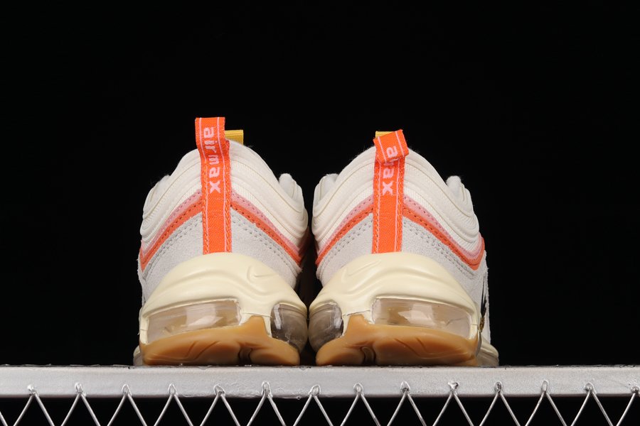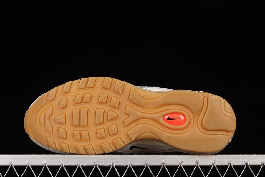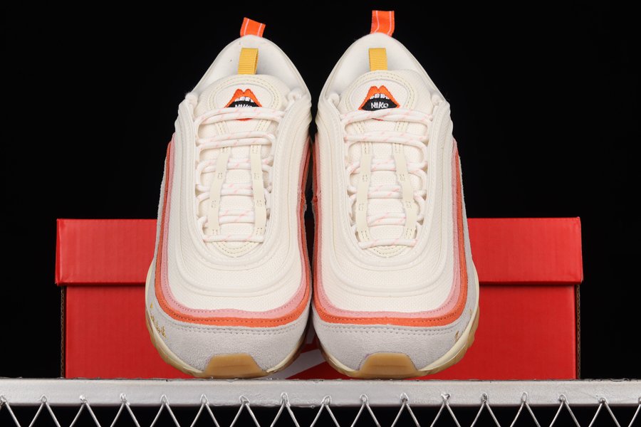 The Nike Air Max 97 “Rock and Roll” comes with an upper constructed in a mix of burlap and suede atop a solid Gum rubber sole. The rock and roll-inspired details come by way of the peace sign hand symbol next to the small embroidered Swoosh and the Rolling Stones-like mouth logo on the tongues and insoles. Nike’s signature “Just Do It” slogan on the lateral and a gum outsole complete the look.