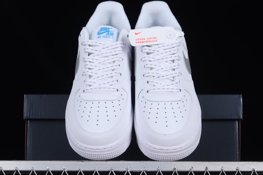 A release that celebrates the model’s 40th Anniversary, this new colorway of the Nike Air Force 1 Low starts off with a White leather upper that’s then contrasted by the Metallic Silver hits on the Swooshes and heels. Adding another dimension to the sneaker are the Blue accents on the branding, 3M reflective laces, and a special Swoosh hangtag.