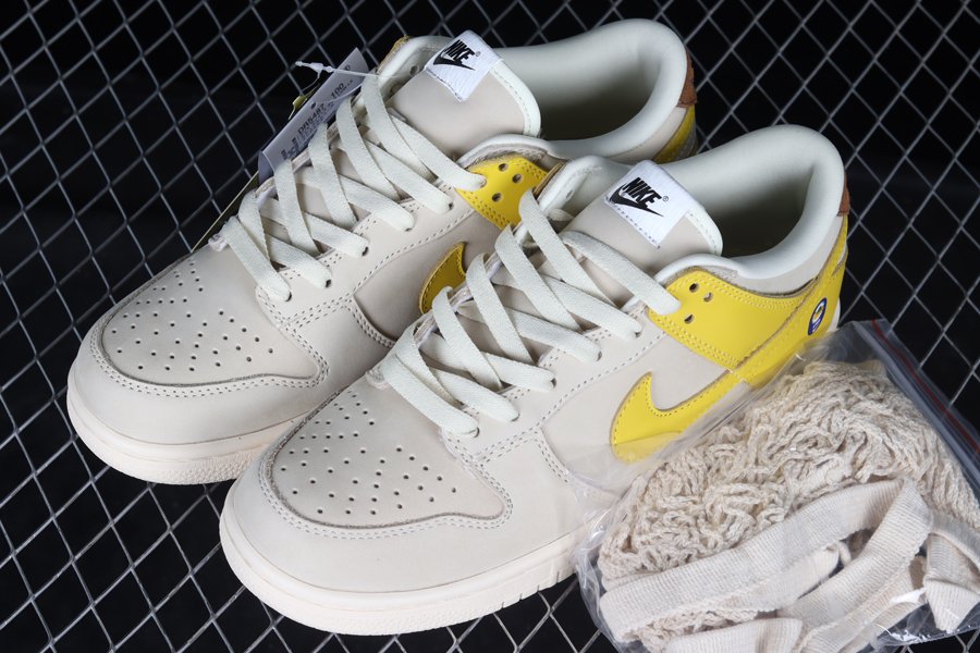 Meet a shoe that will make you go bananas. Say hello to the Nike Dunk Low Banana! Sporting a colourway inspired by the nutritious fruit, this pair begins with a clean cream base that animates the perforated toe box, throat, side panels and collar. Bold yellow accents come via the Swooshes and heel overlay.