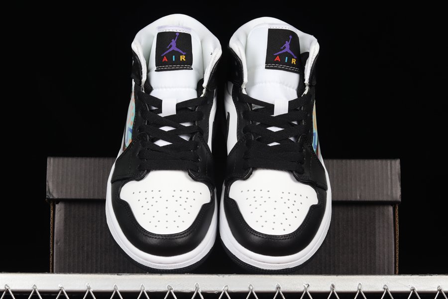 This new iteration of the Air Jordan 1 Mid starts off with a clean White leather upper contrasted by the Black hits on the overlays, Swooshes, laces, and rubber outsole. The highlight of the sneaker is the Michael Jordan hologram placed alongside the 90s inspired style prints and designs in the background. Finishing touches include the Concord Jumpman hits on the tongues and White hits on the Wings and midsoles.