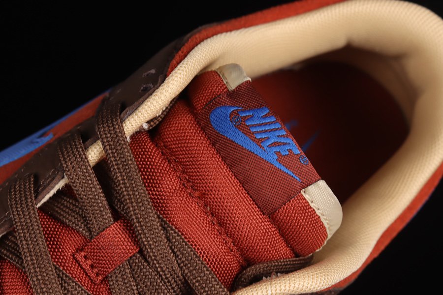 The new colorway of the Nike Dunk Low comes dressed in a Cacao Wow, Comet Blue, Mars Stone, and Phantom color scheme. Design details include a suede base paired with tumbled leather overlays and textile Swooshes. The Brown-hued upper is complimented by the Comet Blue accents on the branding, a Sail midsole and Brown rubber outsole.