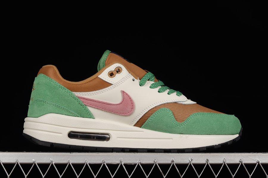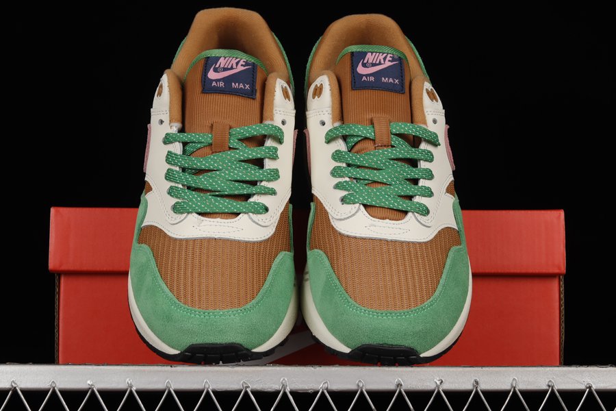Covered in an earthy color scheme of “Treeline/Light Bordeaux-Dark Driftwood,” the sneaker boasts a premium combination of leather and mesh while hits of green and purple hairy suede accents throughout complement the overall profile. Finally, a white midsole featuring Air Max cushioning and a navy rubber outsole tops off the earthy profile.