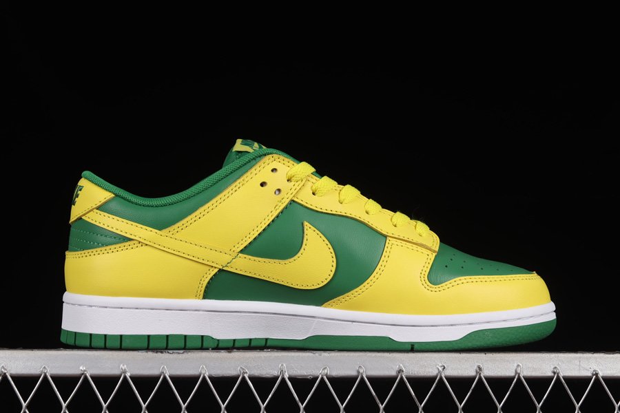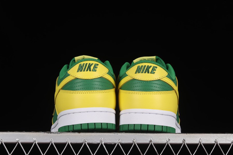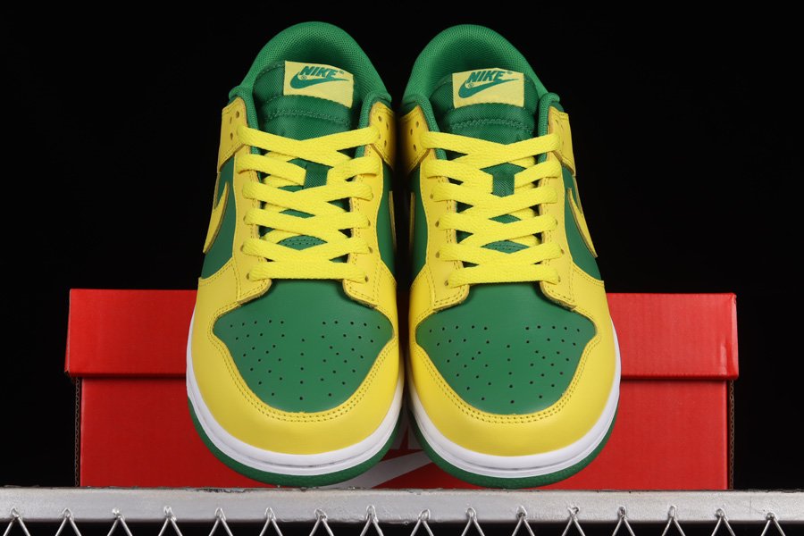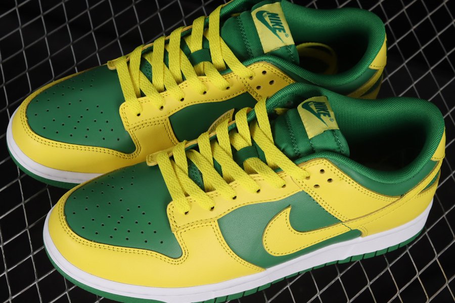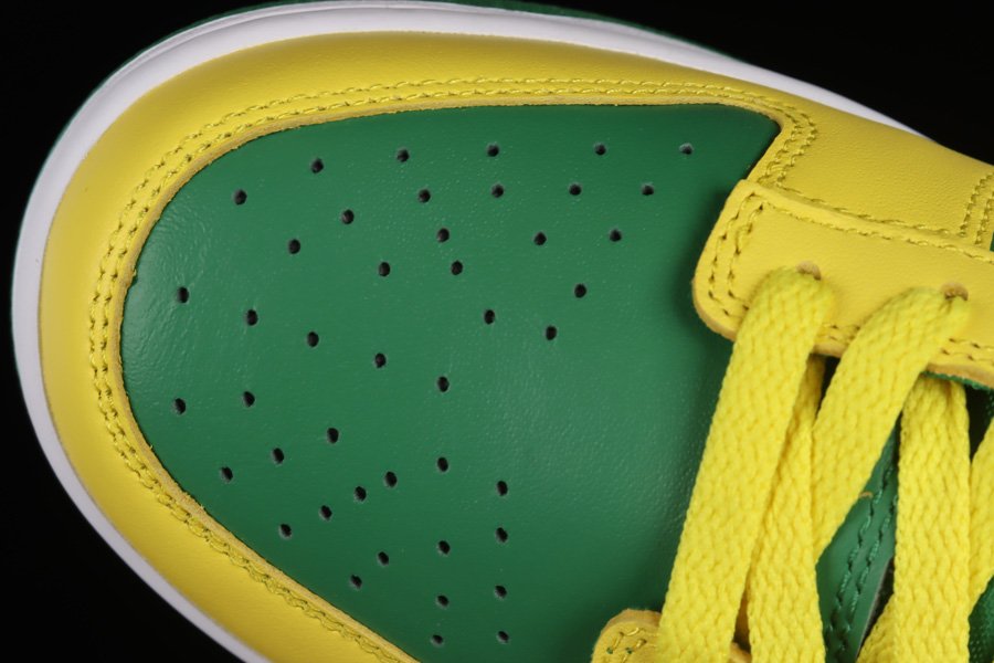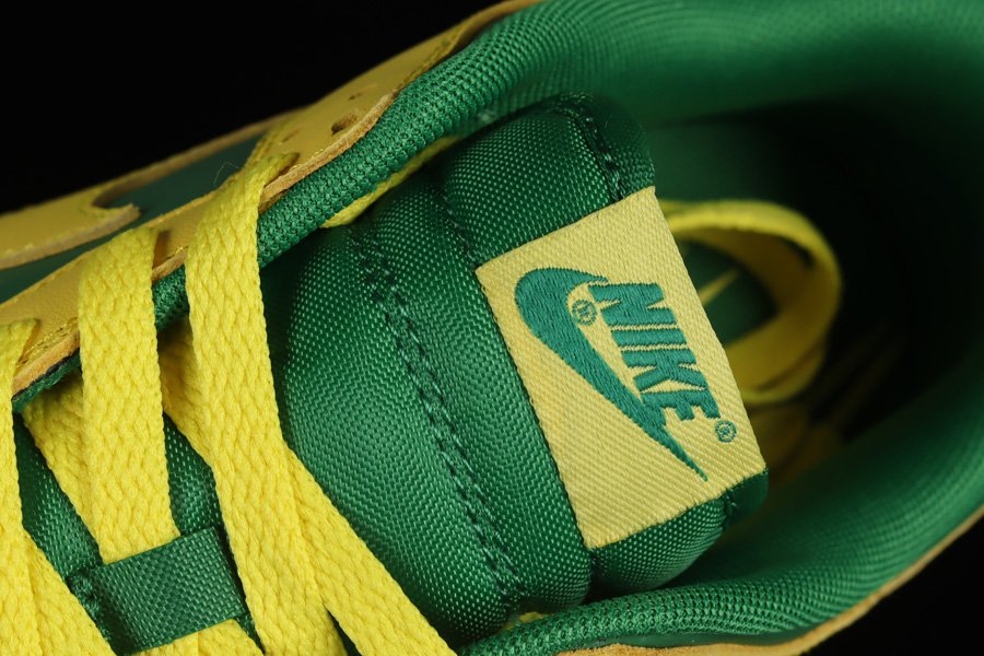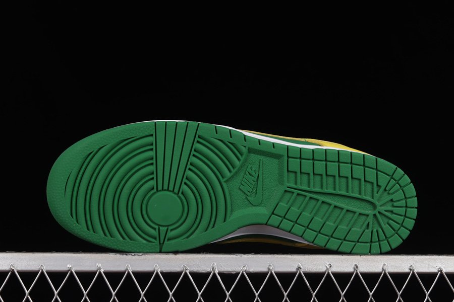This Nike Dunk Low is crafted with various color panels in “Yellow Strike,” “Apple Green,” and “White.” The sneaker has a “Apple Green” leather base that also makes up the tongue panel. “Yellow Strike” leather dresses the overlays, heel tab, and signature Nike Swoosh. More “Yellow Strike” details appear on the laces and tongue tag, while the sneaker is complete with a “White” midsole and “Apple Green” outsole.
