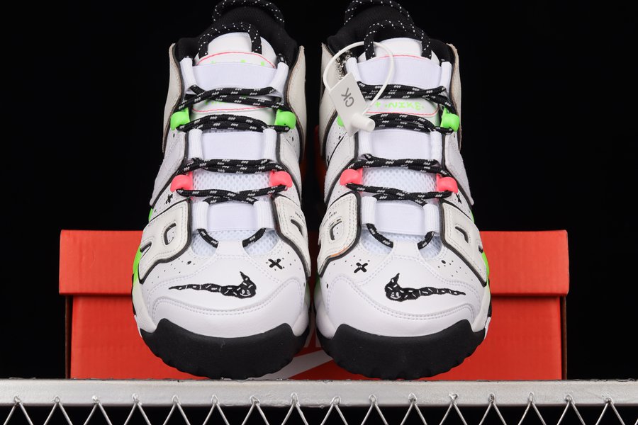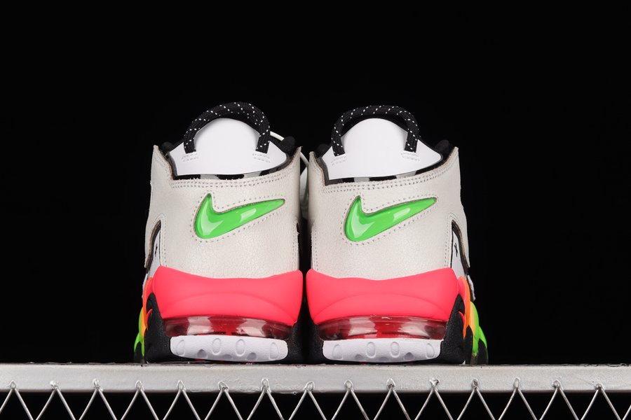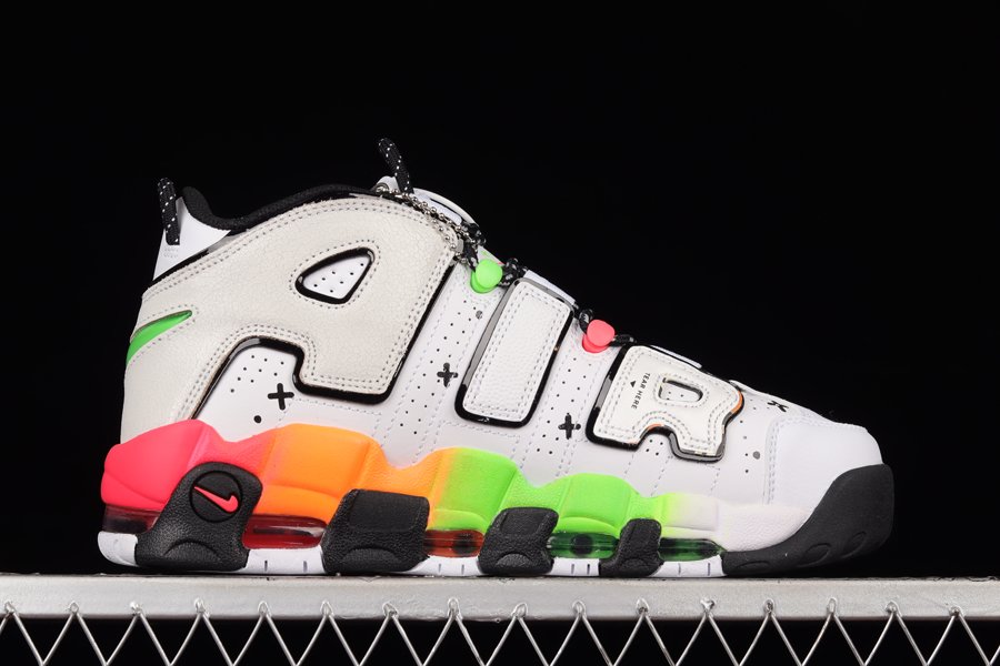 The Nike Air More Uptempo features a smooth and perforated white leather base accented with removable “AIR” branding outlined in contrasting black, while down below is an eyecatching gradient midsole. Other details include the mini Swooshes with smiling ghost faces and sprinkles and matching tongue tabs, along with a special rainbow-colored hangtag.