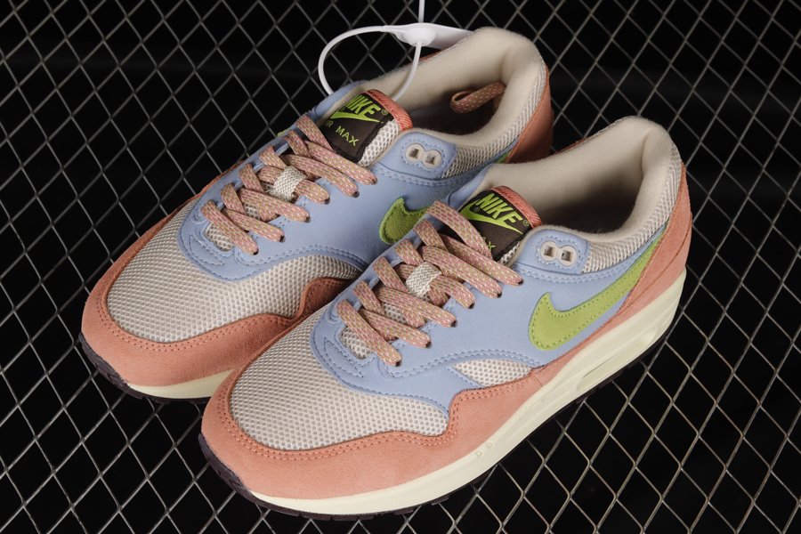 This Nike Air Max 1 ‘Light Madder Root’ take on the runner dons a spring-appropriate color scheme of “Light Madder Root/Vivid Green-Rattan” that is executed in a color block fashion. Additionally, the model boasts a suede and mesh construction with hiking style laces, followed by graphic insoles, and a waffle rubber outsole to solidify the design.
