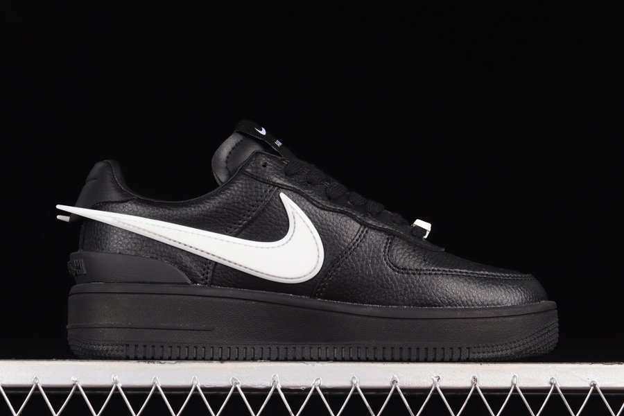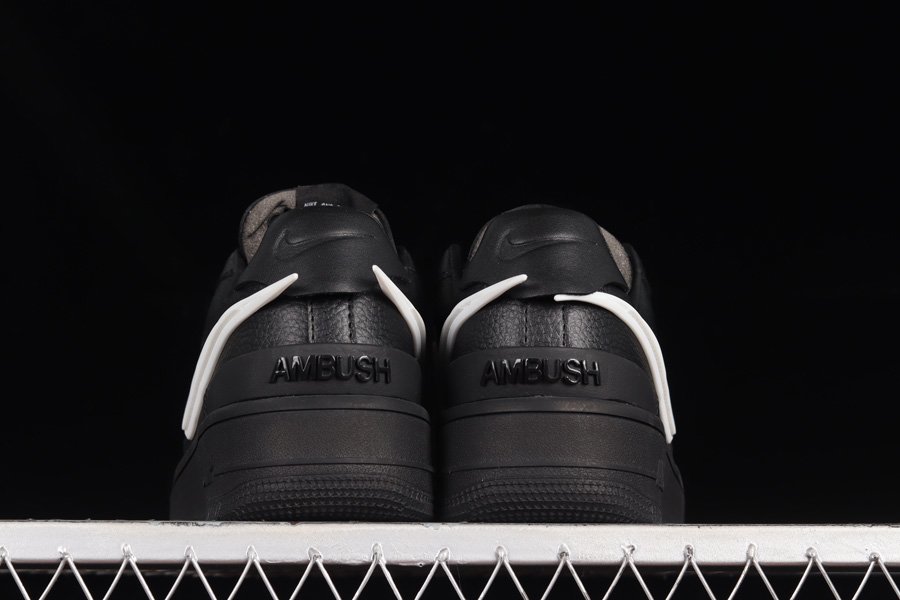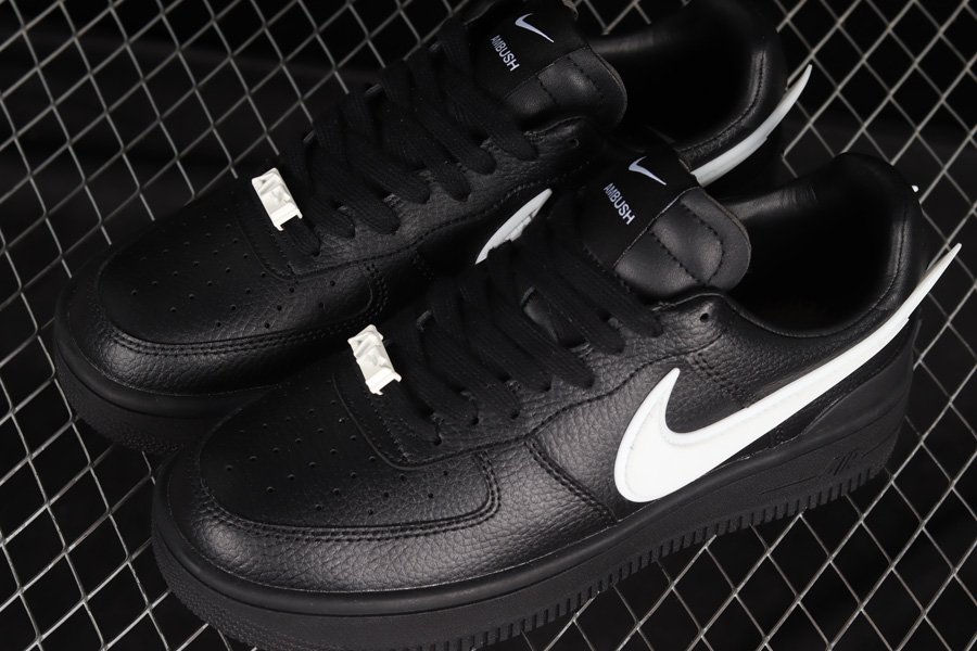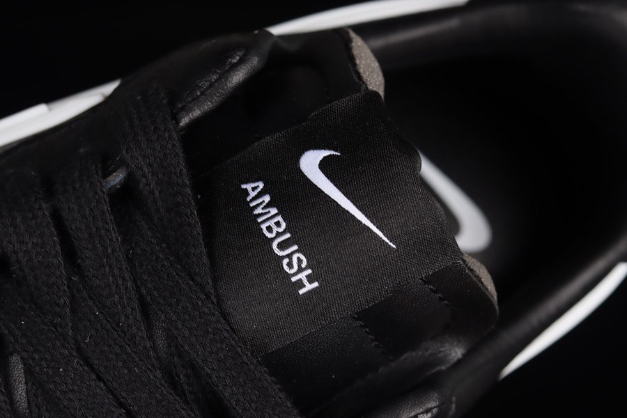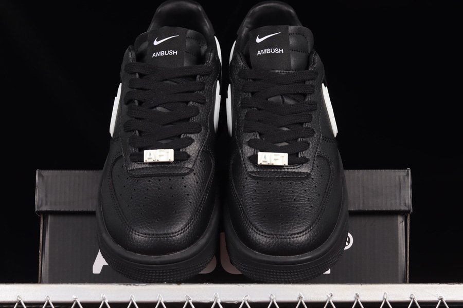 This AMBUSH x Nike Air Force 1 Low Black comes constructed in Black leather build detailed with a White oversized Swoosh similar to the AMBUSH Dunks. Other details includes AMBUSH branded tongue tags, heel counters, and outsoles, with 3D lace dubraes reading “AF-1” to complete the design. Black laces and sole are also in play. The shoes will be housed in co-branded packaging.