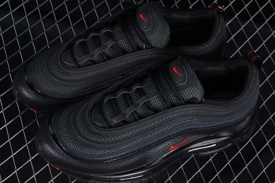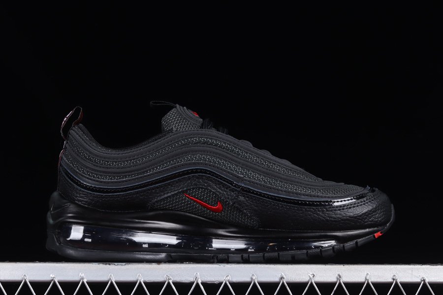 The popular “Bred” theme arrives on the Nike Air Max 97 once more as this rendition is another solid offering in celebration of the silhouette’s 25th anniversary. Sporting an official makeup of “Black/University Red-White,” the runner boasts a combination of mesh and leather for its makeup as it’s entirety draped in black. Finally, the highlight red hue is utilized for the branded details while 3M reflective detailing on its wavy upper, followed by a black rubber sole featuring Air Max cushioning rounds out the profile.