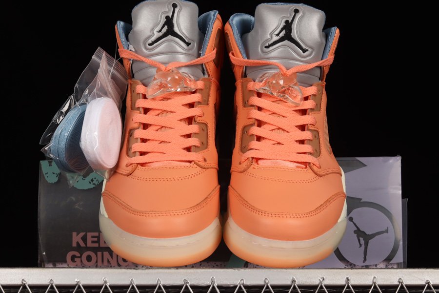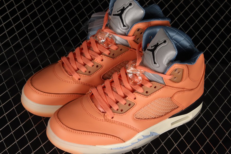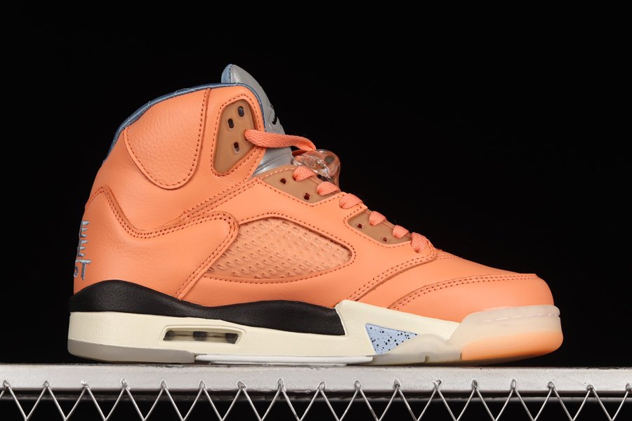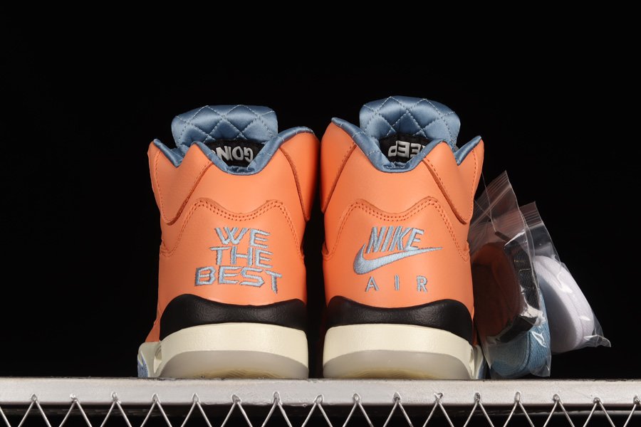 Dubbed the “Crimson Bliss” edition, this Air Jordan 5 Retro sports a premium leather upper with translucent eyelets, like that found on the AJ 5 “Jade Horizon.” A traditional 3M reflective tongue is paired with translucent netting on the side panels. For more premium vibes, a quilted lining in blue is present. Dual branding in the form of “Nike Air” on the right and “We The Best” on the left shoe are featured on the back heels, respectively. All of this sits atop a sail colored midsole with an ice blue speckled flame, finished off by a translucent gum sole with “Nike” on one side, and “We The Best” branding underneath.
