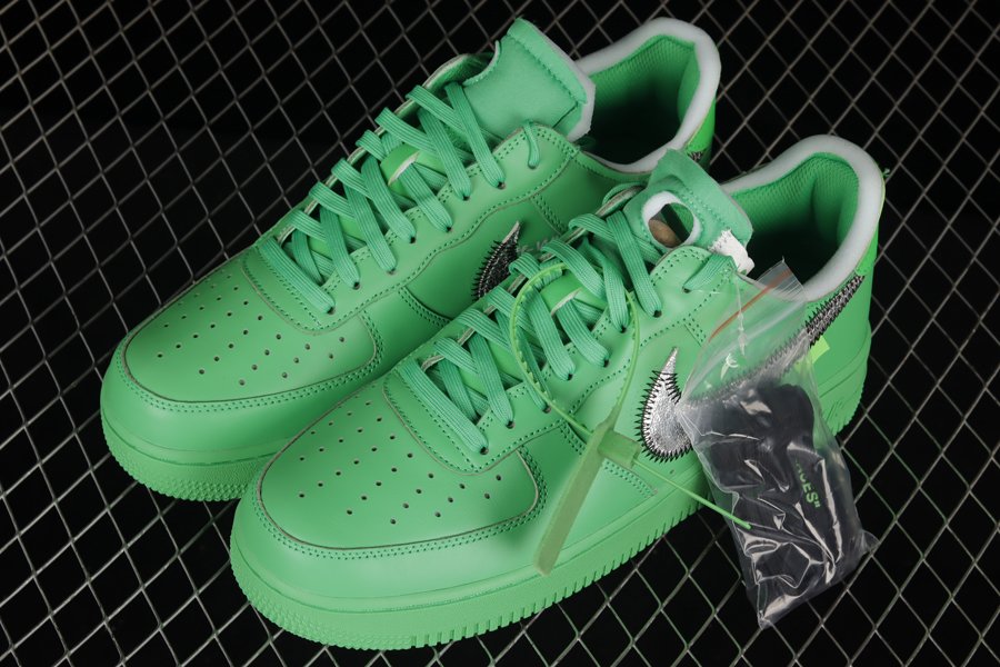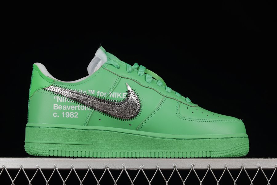 This Off-White Nike Air Force 1 Low Green BKM utilizes the same theme as past Off-White releases. Highlighted with Green leather on the base while Silver fills in the Swoosh logos. Next, Off-White branding is seen throughout while a Green midsole and rubber outsole finishes the look.