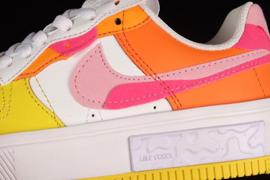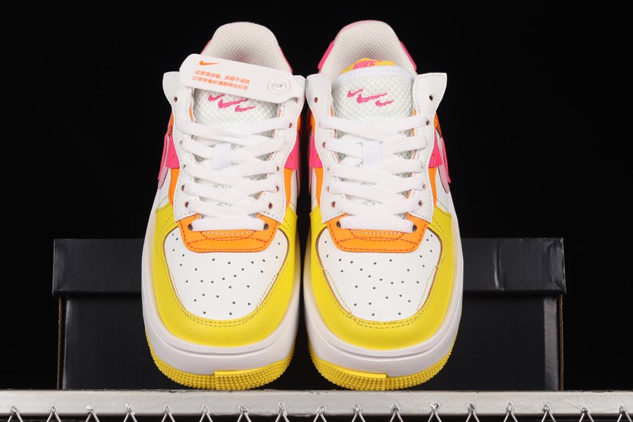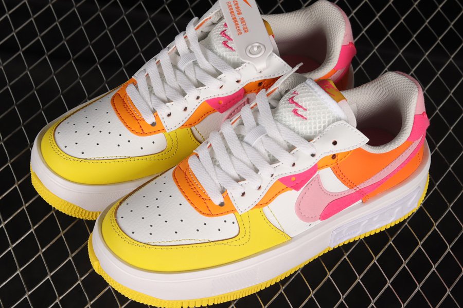 A flurry of bright and vibrant colors come together on this new colorway of the Nike Air Force 1 Fontanka. Equipped with a full leather construction on the upper, this warped and modified Air Force 1 Low gets covered in a White base along with yellow, orange, and pink placed all throughout the overlays on the upper as well as on the various branding throughout the shoe. Mesh detailing on the tongues, a white rubber midsole that has been infused with React cushioning, and a gum-like rubber outsole wrap up the look on this Nike Air Force 1 Fontanka.